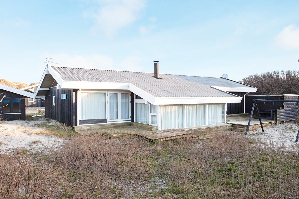 This appealing holiday home, located near Saltum and close to one of the most beautiful North Sea beaches, offers a relaxing retreat with a whirlpool and sauna in the bathroom for ultimate comfort. Set in the scenic dune landscape, the property provides lovely views of nature from the spacious living room as well as from the terrace. The bright and inviting living area is perfect for family gatherings, with space to relax around the TV or cozy up by the wood-burning stove. The open-plan design allows for interaction while cooking in the kitchen or enjoying meals and games at the dining table, keeping everyone together. The bathroom offers a whirlpool and sauna, ideal for unwinding after a day outdoors. The home features four bedrooms, where you can wake up to views of the dunes and listen to the soothing sounds of the North Sea. Comfortably furnished, the bedrooms ensure a restful stay for the entire family. Outside, there is an east-facing terrace where you can enjoy the morning sun, and a west-facing terrace for relaxing in the evening sunshine. This layout provides both sun and shade throughout the day, along with wind protection as needed. For the youngest family members, the property includes a swing and seesaw on the grounds, offering safe and fun outdoor activities. With its combination of modern amenities, spacious interiors, and a prime location near the beach, this holiday home is ideal for families seeking relaxation, outdoor enjoyment, and quality time together. Please note: rental to youth groups is not permitted.A refundable deposit might be charged closer to your check-in date. The security deposit ensures a smooth stay and covers any additional services or consumption charges.This deposit covers utilities consumed during your stay and any additional services that may be taken.The final amount will be adjusted based on actual meter readings, actual usage of extra services, and any remaining balance will be refunded within 21 days after checkout.This deposit simply acts as a prepayment for charges that you would anyways pay for, ensuring a seamless stay and check-out experience.