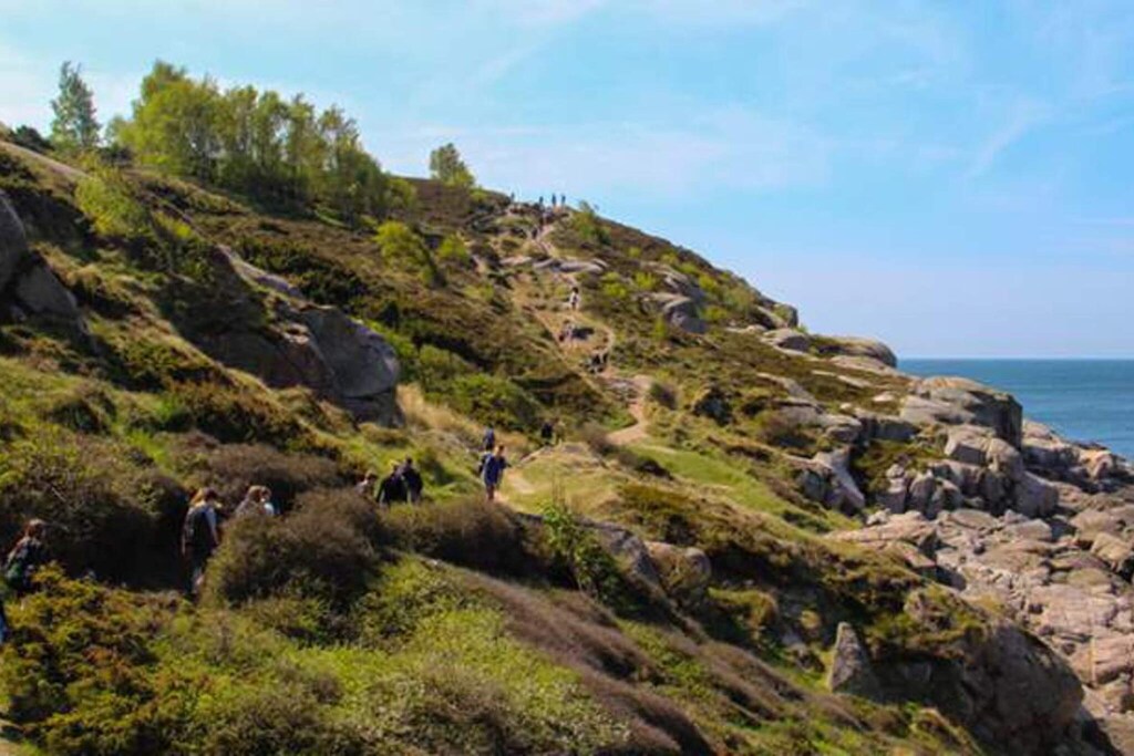 Casa Blanca - Beautiful holiday apartments in Gudhjem Casa Blanca welcomes you with beautiful holiday apartments and a wonderful location in the center of Gudhjem, which is one of Bornholm's most sought-after holiday cities. You live close to Gudhjem's many small shops, cafes, the harbour, the sea and the cliffs - and yet in a quiet location. In the lovely courtyard you can enjoy yourself by the swimming pool, where there is also a children's section with a shallow depth. The beautiful holiday apartments are bright, well-furnished and many have a wonderful sea view. Choose between apartments for 2 or 2-4 people. If you are a larger family on a trip, Casa Blanca is therefore also an ideal place for you, as you can enjoy yourself together - but still each have your own holiday home. A beautiful and modern 125 year old For more than 125 years, Casa Blanca has been one of Gudhjem's favorite resorts. As early as 1897, the widow Sofie Rasmussen thus started a boardinghouse at the address, and with the beautiful location, the boardinghouse quickly became a sought-after holiday resort. In 1918, Johan Koch took over the boardinghouse, and shortly afterwards he turned the house white. A white house was very atypical in Gudhjem over 100 years ago - as almost all houses were yellow or red - and therefore the guest house was known by the name Casa Blanca, as the resort has now been called for over 100 years. Since then, Casa Blanca has been renovated many times - and most recently in 2023, where the swimming pool area will be completely renovated. Look forward to beautiful and modern holiday apartments in a historic and cozy environment. Visit the sights in Gudhjem Set course for Gudhjem Harbour and the cosy harbour atmosphere with sailors, cafés, smokehouses, craftsmen and the cries of seagulls. Gudhjem Harbour is the perfect place to taste the famous open rye sandwich: Sun over Gudhjem. The area around Gudhjem offers several scenic experiences such as the Sanctuary Cliffs, also known as Helligdomsklipperne, and the beach. Take walks along the coastal rescue path and discover the many beautiful viewpoints.