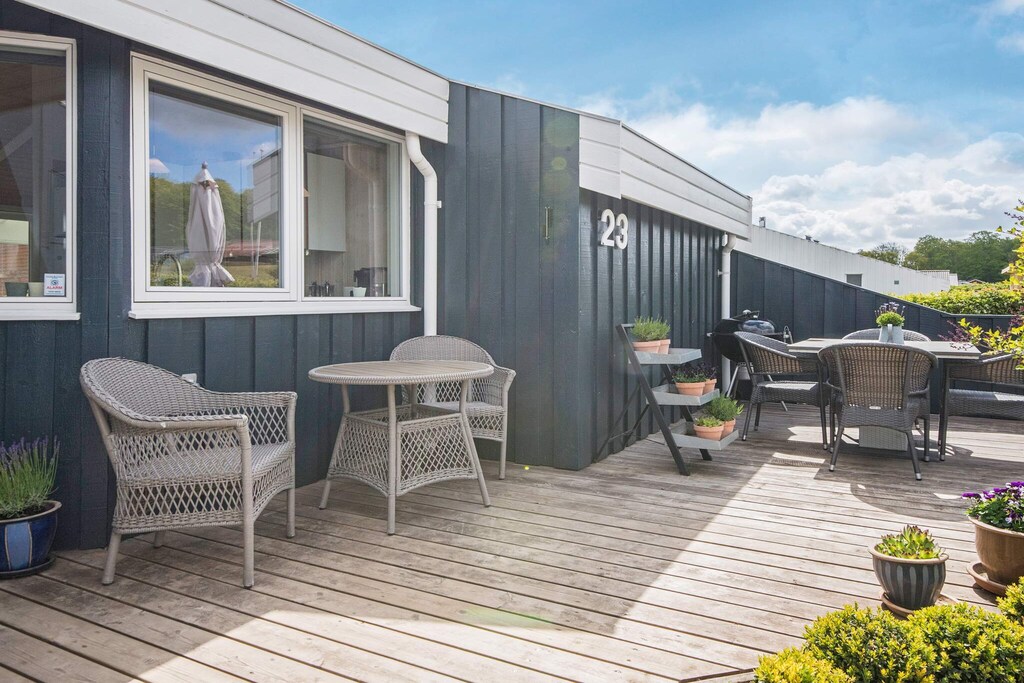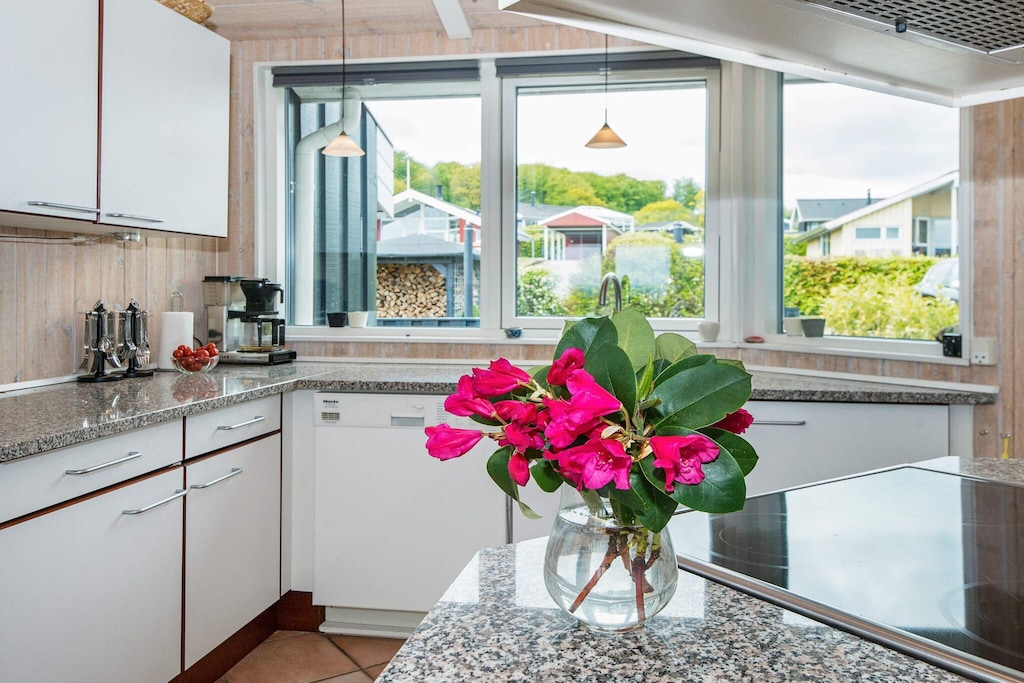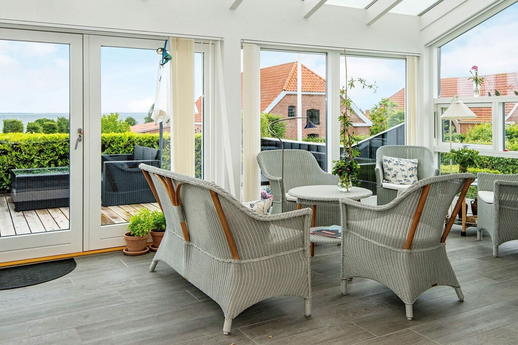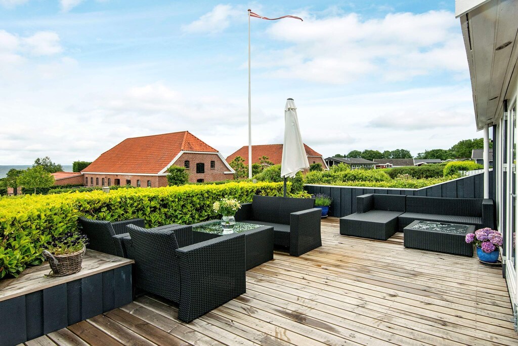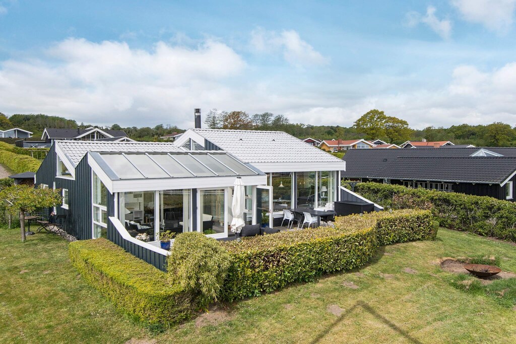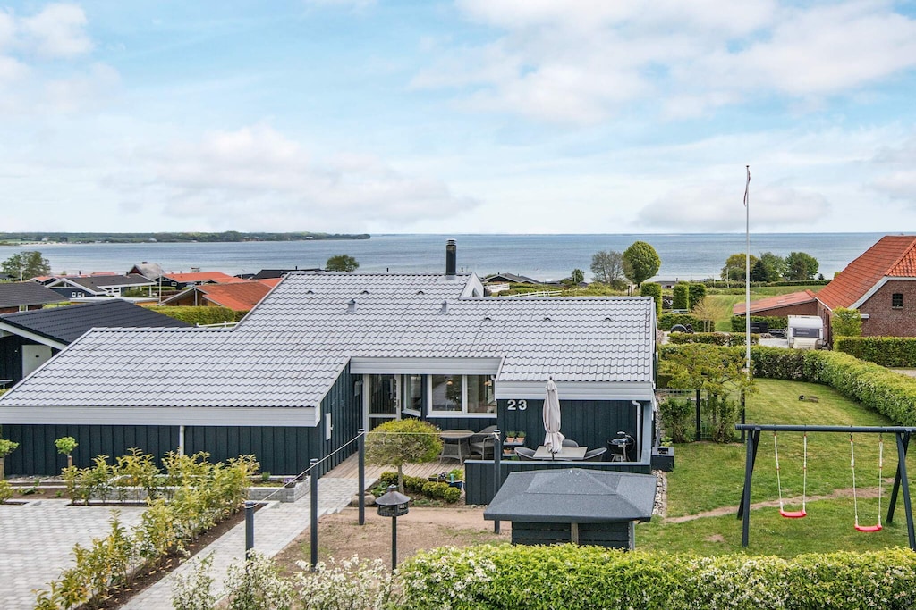 In the popular holiday home area Grønninghoved you will find this holiday home with whirlpool and sauna and a completely unique view of the sea. The heart of the cottage is the large living room and kitchen area with sloping ceilings and large windows facing the large terrace areas and the water. Along with the large windows and bright walls, the house will feel bright everywhere. The well-equipped house has i.a. dishwasher and heat pump. The owner of the house has provided a cozy interior of the house with modern conservatory and a living room, which is raised by a few steps. Everywhere from here you have the most beautiful view of the sea. There are three bedrooms. One of the single beds has a reclining dimension of 190 cm. After a nice day at the child-friendly beach, the sore muscles can be loosened up in the house's whirlpool and sauna. Outside, the large terrace areas await, where you can live the outdoors all day long with the first rays of the day until sunset to the west. The terraces have good garden furniture. For children and other playful people there is a swing and sandpit in the garden. Not for rent to youth groups.