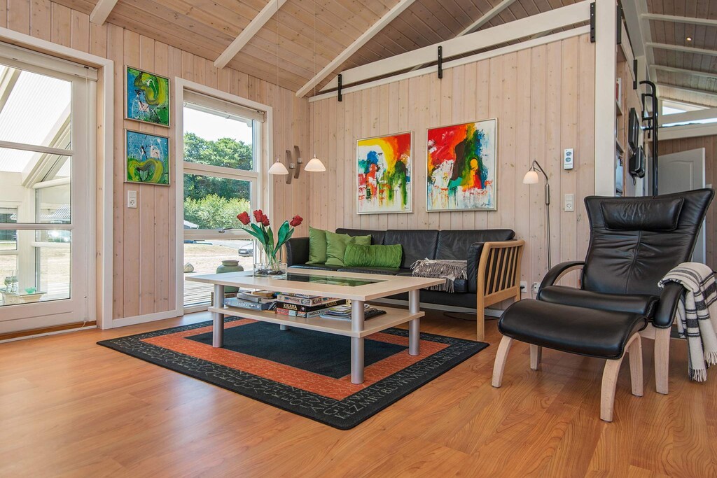 Here in the house in Grønninghoved, you are welcomed inside a large and in particular bright and spacious cottage that can form the framework for your next holiday. The house is equipped with whirlpool and sauna, which can be used after a nice day at the beach or after one of the many possible excursion options in the area. The house is furnished with plenty of space for both large and small. Enjoy e.g. the lovely conservatory where the outdoors can be enjoyed, whether there is sun or not. The house is furnished with three regular double bedrooms and plenty of space. One room also has an additional TV with DVD player, and the other TV in the living room also has & # 8221; Chromecast & # 8221; so you can also stream movies. The homeowner has provided several boxes of Lego bricks, so that a small & # 8221; Legoland & # 8221; in the House. In addition, it should be approx. 20 m2 large loft is also highlighted as an accommodation or play area. There are over 100 m2 of wooden terraces, which can be enjoyed both in the morning, afternoon and in the evening, as these are built on three of the sides of the house. If you want shade, there are approx. 20 m2 covered terraces. Not for rent to youth groups.