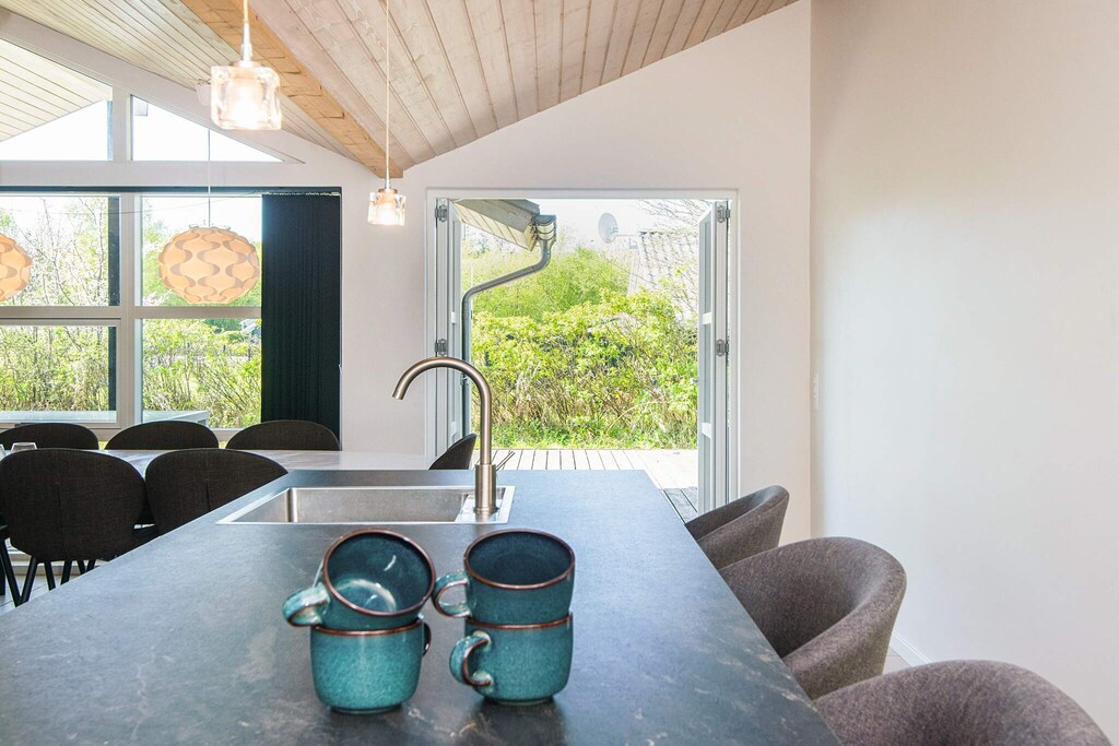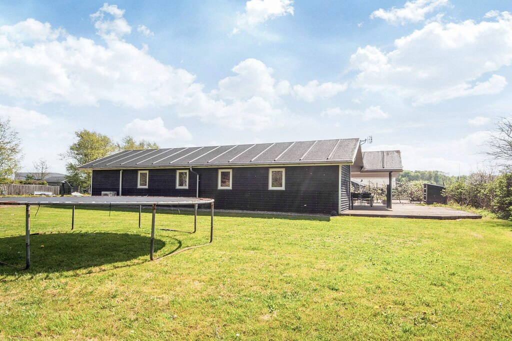Cottage with whirlpool and large, covered terrace located in the shelter and with a path at the end of the road that leads directly down to the beach at Grønninghoved. The combined living room and kitchen have panoramic windows and access to the terrace. The special wood stove can supplement the underfloor heating. The bathroom has a whirlpool for relaxing after an active day, and in addition there are three double bedrooms. In the garden there is a trampoline (use is at your own risk).