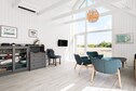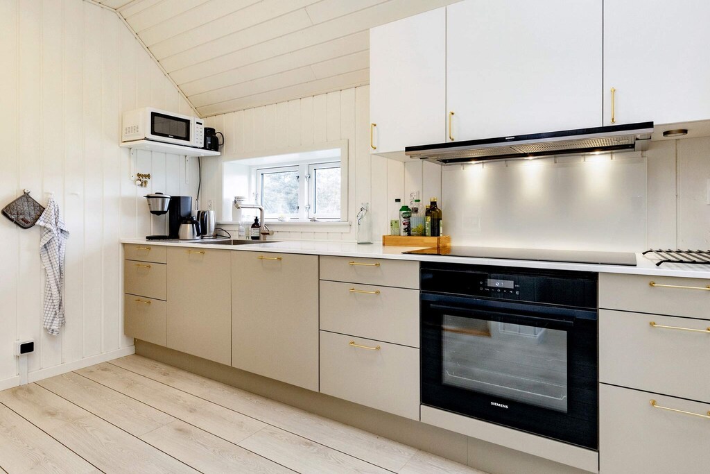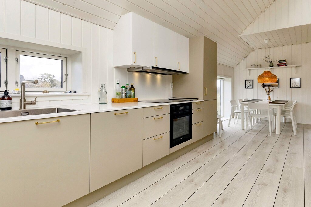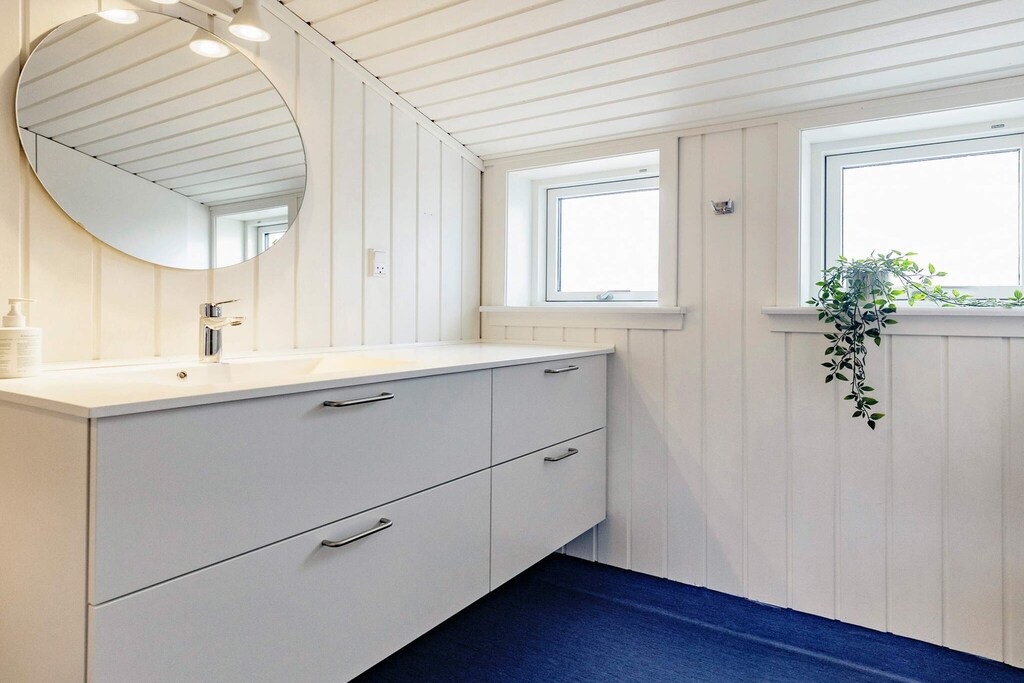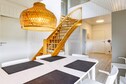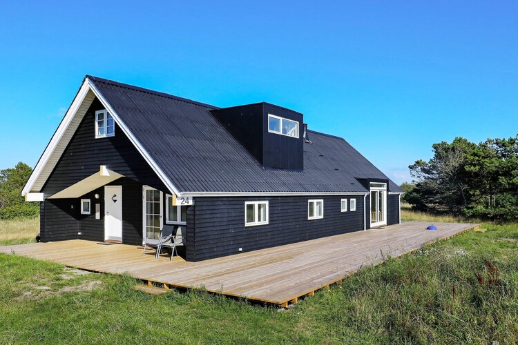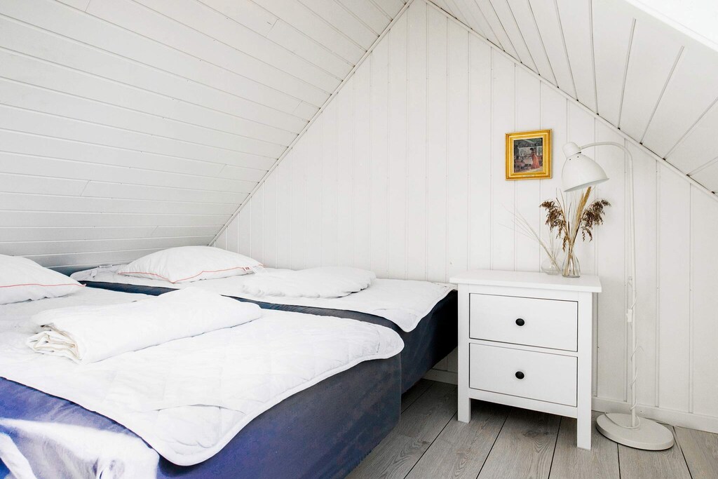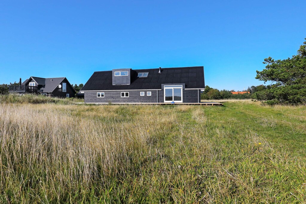 Bright, renovated cottage in Kandestederne with a good setting to gather the large family or 2 families in lovely and quiet surroundings, not far from the West Coast and the most beautiful natural surroundings. The cottage, which is on 2 levels, is furnished with ground floor with nice kitchen with dining area, bathroom and living room with a fantastic light from i.a. the large window section in the gable to the east, where the morning sun enters. The living room is almost extended with the exit to the large south-facing terrace, where there is sun all day. There are three rooms with single beds (can be combined into a double bed). From the kitchen there are stairs to the first floor landing with distribution to another bathroom with a view of the dunes and a view of the Råbjerg mile. On the first floor there are also two rooms with single beds (can also be combined into double beds). From the cottage it is only 200 m to the famous Hjorts Hotel with restaurant and approx. 800 m to the good, wide beach by the North Sea. Not for rent to youth groups.