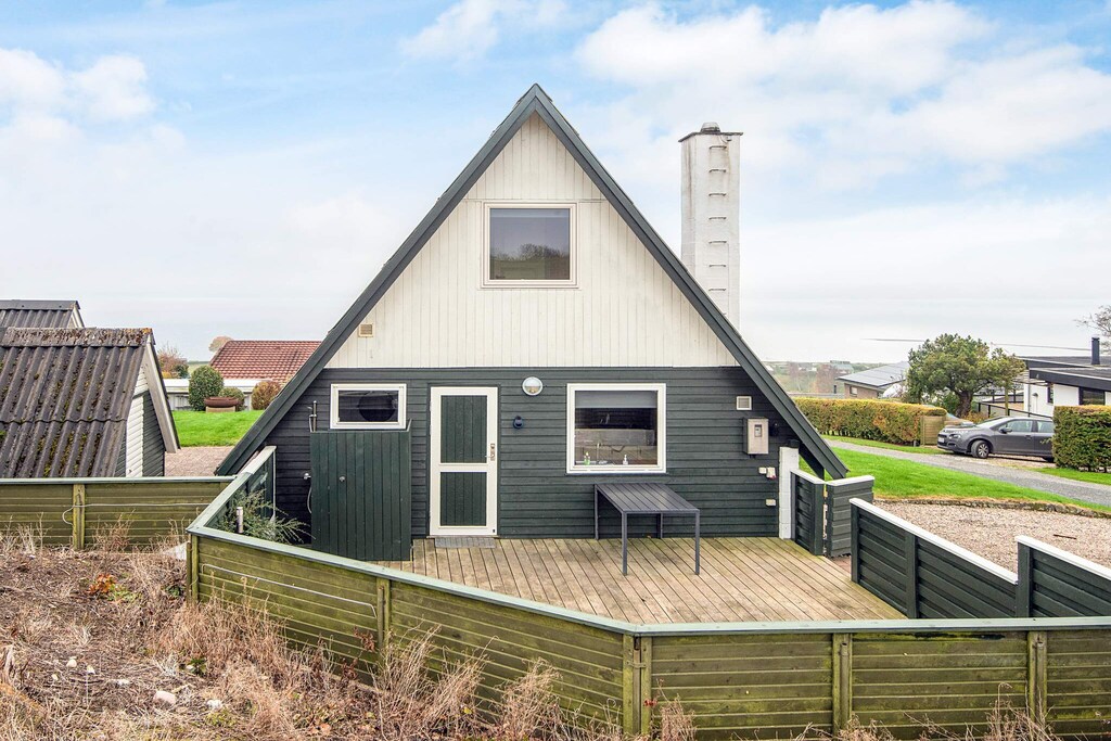 With this high-rise cottage with sauna, you get a completely unique view of the cottage area in Skarrev. As I said, the house offers a completely unique view and at the same time the house forms a really good frame both inside and out. The house exudes a good Danish holiday home atmosphere. Here you can relax and enjoy the view of the fjord with all the life that takes place on it. There is a separate wellness room with solarium. The sauna is located in a small cabin. After a walk on the beach, you can use the outdoor shower for a rinse. There are two bedrooms on the 1st floor as well as an annex. The two single beds have a length of 1.90 meters. The washing machine can be used in the period from 1 April to 1 October. From the veranda on the 1st floor you can enjoy the area's highest location overlooking the sea. The terraces can be enjoyed all day as they follow the sun around the house. Among other things, two solar carts and various garden furniture. At the same time, one terrace is closed so that the children can run free. The house also has a landscaped garden, where the holiday life can also be lived. Not for rent to youth groups.