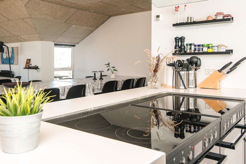 Spacious cottage, which contains everything the heart can desire of activity and development opportunities. The large pool area contains a swimming pool, sauna and whirlpool with room for 4-6 people. After a good and eventful day in Thy's beautiful nature, it is great to let yourself slide down into the house's large whirlpool and just relax while you get an underwater massage of the hot rays or let yourself be warmed through in the sauna. In the activity room you can challenge each other in table football, billiards, darts or X-box. There is a flat-screen TV in the activity room and 2 bunk rooms. The house is extremely spacious and well-dimensioned. The dining / living area is practically furnished with a flat-screen TV, sofa area and wood burning stove. The house has 10 bedrooms, eight with double beds and two with each a bunk for two people and each two beds. There is a cot and two high chairs. There are three toilets with washbasin, three with shower and all have underfloor heating. Large kitchen with everything in white goods, which belongs in a house for many people, including two dishwashers and two stoves. Wireless internet connection allows you to check emails or anything else. The house is located by Denmark's first national park, National Park Thy, on a large natural plot with terrace.