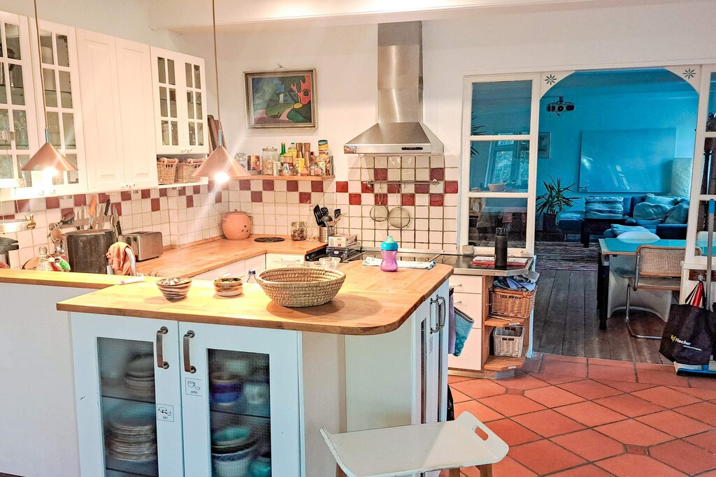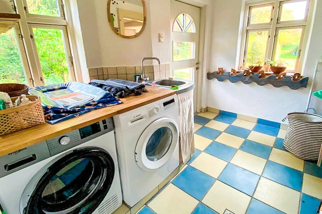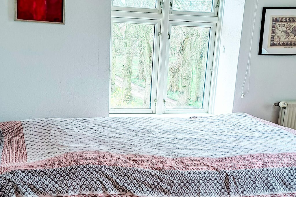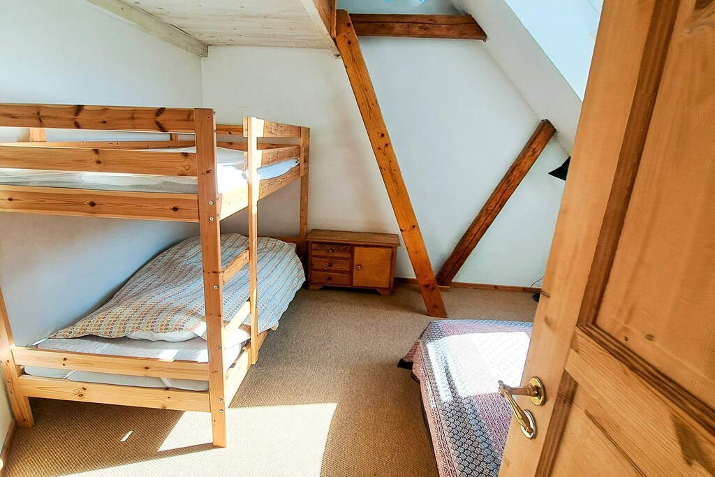 At Sønderborg you will find this spacious cottage on 2 floors, which is one of two contiguous homes in an older property. The large park-like garden is shared with the tenants in the other residence. The cottage consists of an entrance hall with stairs to the 1st floor, large kitchen / living room with dining area for eight people, living room with TV, four bedrooms and a bright activity room with table football and three lofts with mattresses that can be moved around as needed. There are two bathrooms with shower, one of which also has a bath. Not for rent to youth groups.