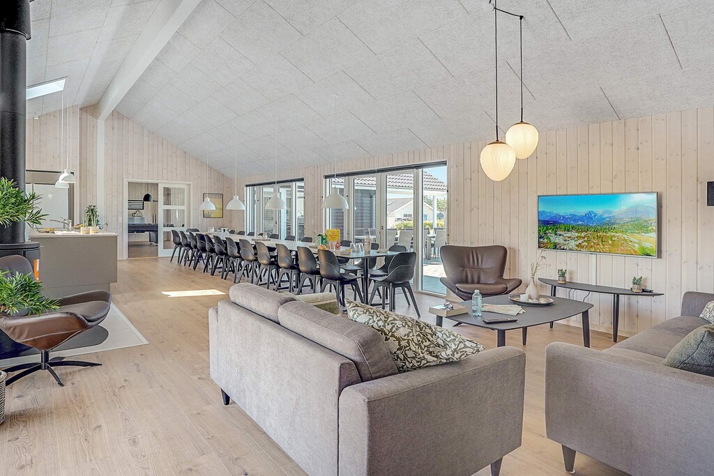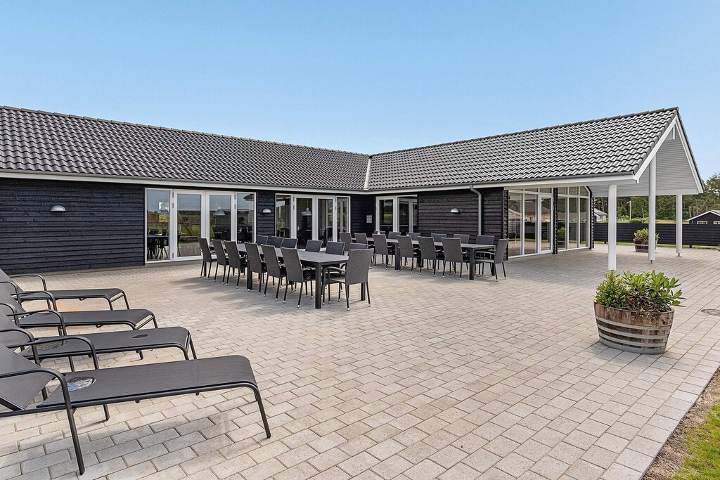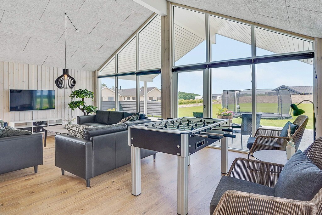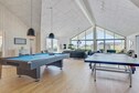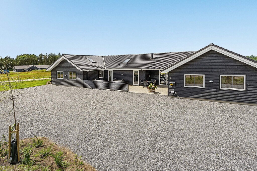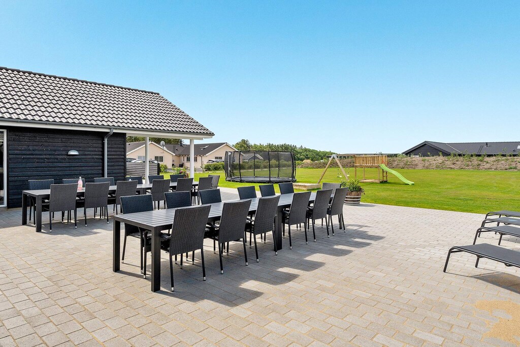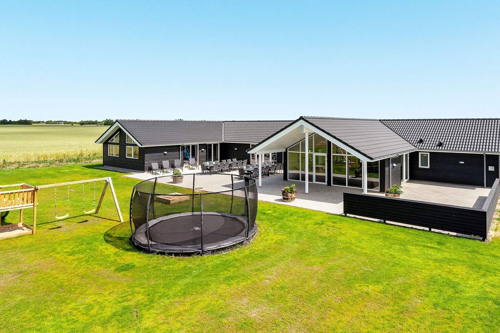 Spacious vacation home for 26 people with swimming pool, hot tub, sauna, and activity room located by the Limfjord, just a short drive from the market town of Skive. If a swim sounds like something for you, it's great that the holiday home has its own swimming area. Here you will find the cottage's heated swimming pool with a water slide, counter-current system, and Roman steps. After a swim in the pool, you can enjoy a dip in the hot tub or sauna—perhaps an even bigger hit with the older members of the group? The cottage's many possibilities continue in the activity room. Here you can compete in billiards, table tennis, table football, and darts. While the players are busy with the various activities, spectators can enjoy a drink at the room's bar. If you want to watch a movie, you can do so in the sofa area, which is equipped with a PlayStation4. In total, the luxury house has 10 bedrooms spread over three sleeping areas with en suite bathrooms. There are six additional sleeping places in the loft in the activity room, where younger guests in particular enjoy spending the night. In the heart of the cottage, the large kitchen/family room, there is plenty of space for large holiday dinners. If you are a skilled cook for 26 people, dinner can be conjured up in the well-equipped kitchen, which has two dishwashers, two ovens, two sinks, two refrigerators, and extra stove space. When it's time to serve and enjoy the food, there is plenty of room for 26 people at the room's long dining table. The large open-plan kitchen is connected to the bright living room and lounge, where the wood-burning stove can keep you warm on cooler days. The cottage's terrace is partially covered, which means that it can be used even if it rains. On the terrace, you will also find two barbecues where you can prepare dinner while the children jump on the in-ground trampoline in the garden (use at your own risk/insurance). You will also find a charging station for electric cars by the house. Not available for rental to youth groups.