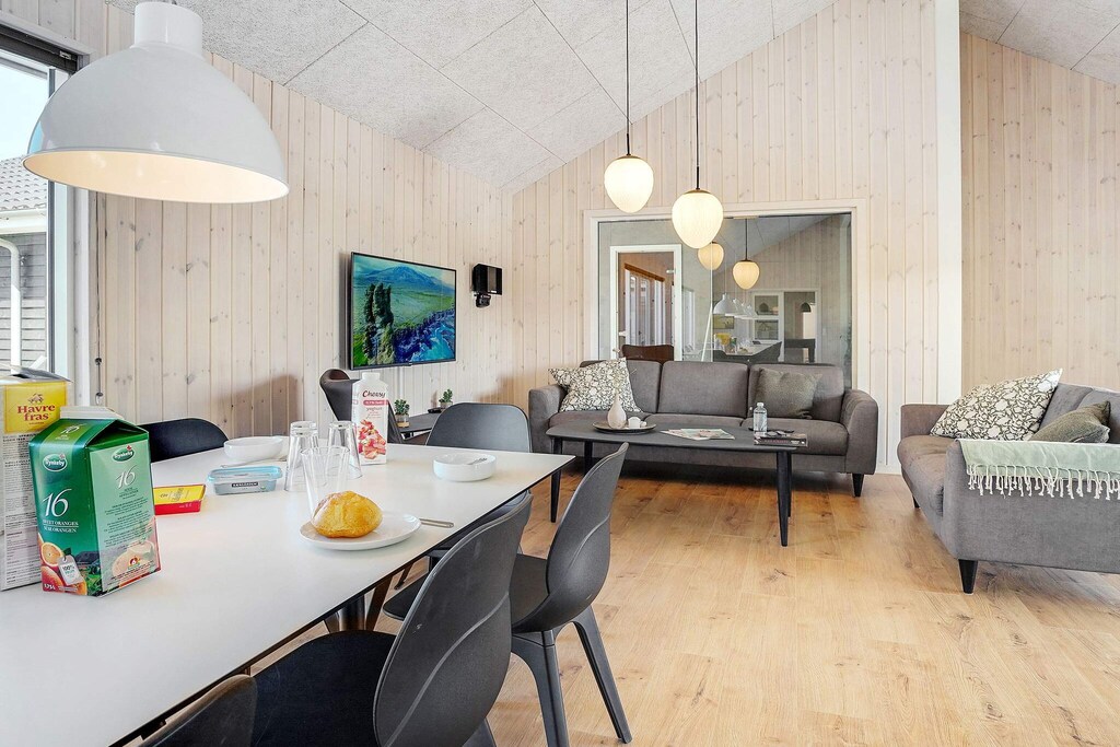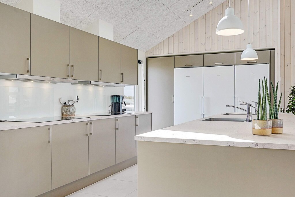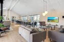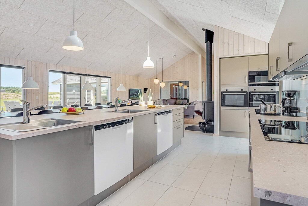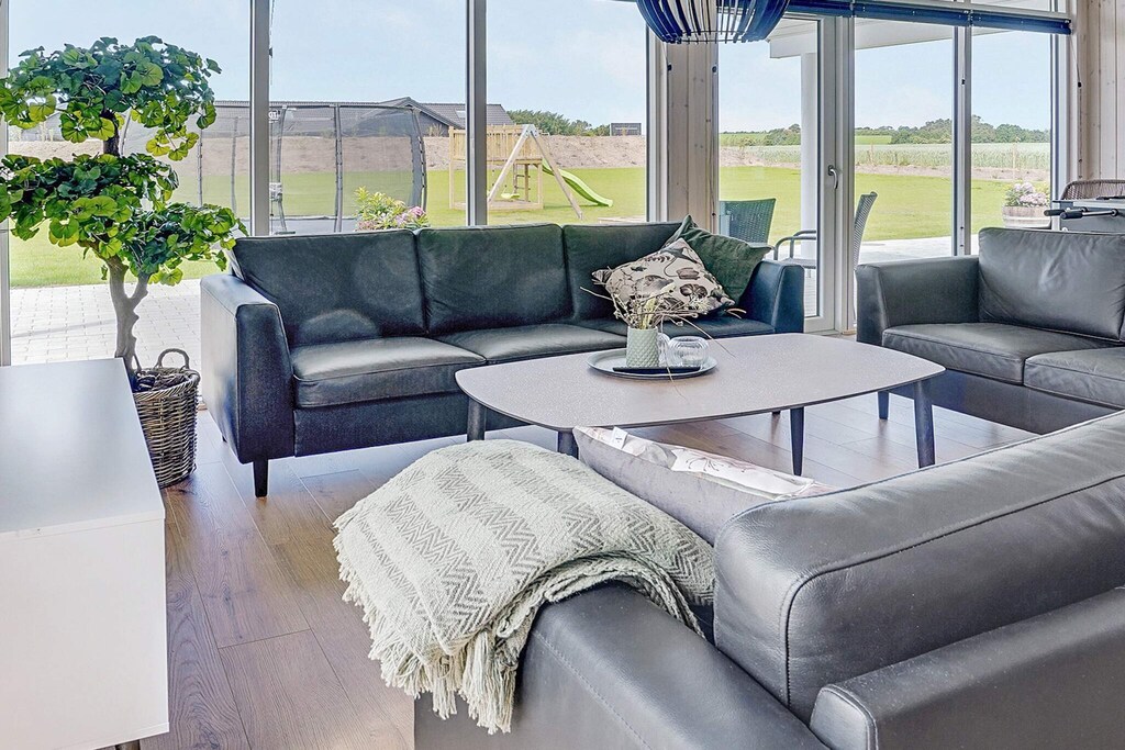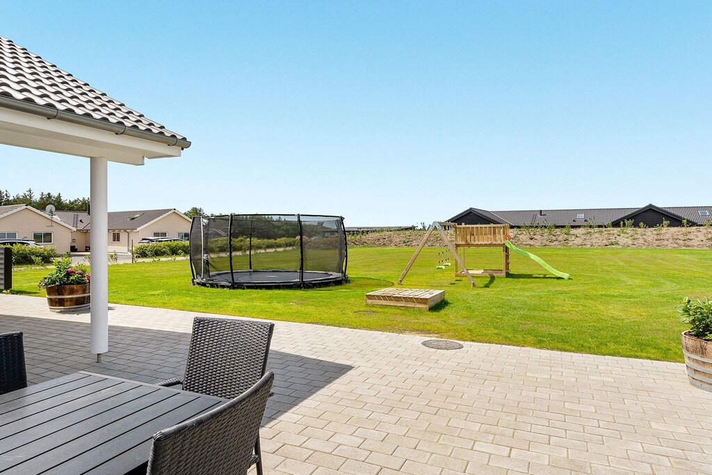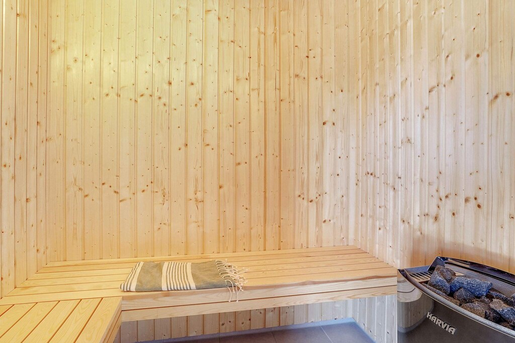 Spacious vacation home for 26 people with swimming pool, hot tub, sauna, and activity room located by the Limfjord, just a short drive from the market town of Skive. If a swim sounds like something for you, it's great that the holiday home has its own swimming area. Here you will find the cottage's heated swimming pool with a water slide, counter-current system, and Roman steps. After a swim in the pool, you can enjoy a dip in the hot tub or sauna—perhaps an even bigger hit with the older members of the group? The cottage's many possibilities continue in the activity room. Here you can compete in billiards, table tennis, table football, and darts. While the players are busy with the various activities, spectators can enjoy a drink at the room's bar. If you want to watch a movie, you can do so in the sofa area, which is equipped with a PlayStation4. In total, the luxury house has 10 bedrooms spread over three sleeping areas with en suite bathrooms. There are six additional sleeping places in the loft in the activity room, where younger guests in particular enjoy spending the night. In the heart of the cottage, the large kitchen/family room, there is plenty of space for large holiday dinners. If you are a skilled cook for 26 people, dinner can be conjured up in the well-equipped kitchen, which has two dishwashers, two ovens, two sinks, two refrigerators, and extra stove space. When it's time to serve and enjoy the food, there is plenty of room for 26 people at the room's long dining table. The large open-plan kitchen is connected to the bright living room and lounge, where the wood-burning stove can keep you warm on cooler days. The cottage's terrace is partially covered, which means that it can be used even if it rains. On the terrace, you will also find two barbecues where you can prepare dinner while the children jump on the in-ground trampoline in the garden (use at your own risk/insurance). You will also find a charging station for electric cars by the house. Not available for rental to youth groups.