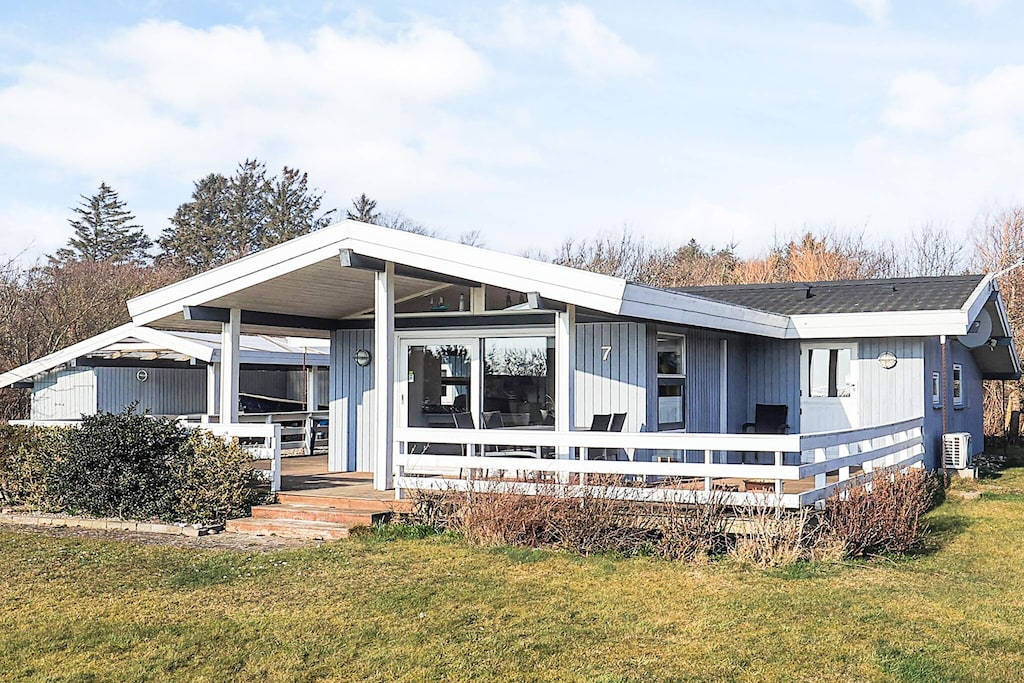 Cottage situated on well-kept grounds with lawn and panoramic views of the Limfjord. Well-appointed living room with wood-burning stove. There are 3 bedrooms and an entrance hall. There is both a covered and open terrace. The house has a hot tub and sauna as well as fast fiber broadband. Rowing boat available (use is under the tenant's own responsibility/insurance). The rowing boat is on a trailer. If you do not wish to row, you can rent a 6 HP boat motor for DKK 1,000.00 per week and DKK 1,500.00 for 2 weeks. The motor is ordered upon arrival at the house. Visit Hjerl Hede, which is known for its open-air museum. Here are working workshops and people dressed in old costumes populate the old village. The museum's 40 buildings show the development of the Danish village from the 16th century up to the 20th century - with a smithy, inn, mills, school, vicarage, dairy, grocery store, farms and much more. If you're interested in antiques, you'll find an impressive selection at Straarup Hovedgaard, which is located about 8 km from Skive. Here, the main building and gatehouse form the setting for a versatile exhibition of Danish and international antiques, classic furnishings, colonial furniture, older art and curiosities. At the nearby Dalsgaard, the farmhouse and former farm building have been converted into exhibitions with a large selection of furniture, porcelain, glass, books and handicrafts.A refundable deposit might be charged closer to your check-in date. The security deposit ensures a smooth stay and covers any additional services or consumption charges.This deposit covers utilities consumed during your stay and any additional services that may be taken.The final amount will be adjusted based on actual meter readings, actual usage of extra services, and any remaining balance will be refunded within 21 days after checkout.This deposit simply acts as a prepayment for charges that you would anyways pay for, ensuring a seamless stay and check-out experience.