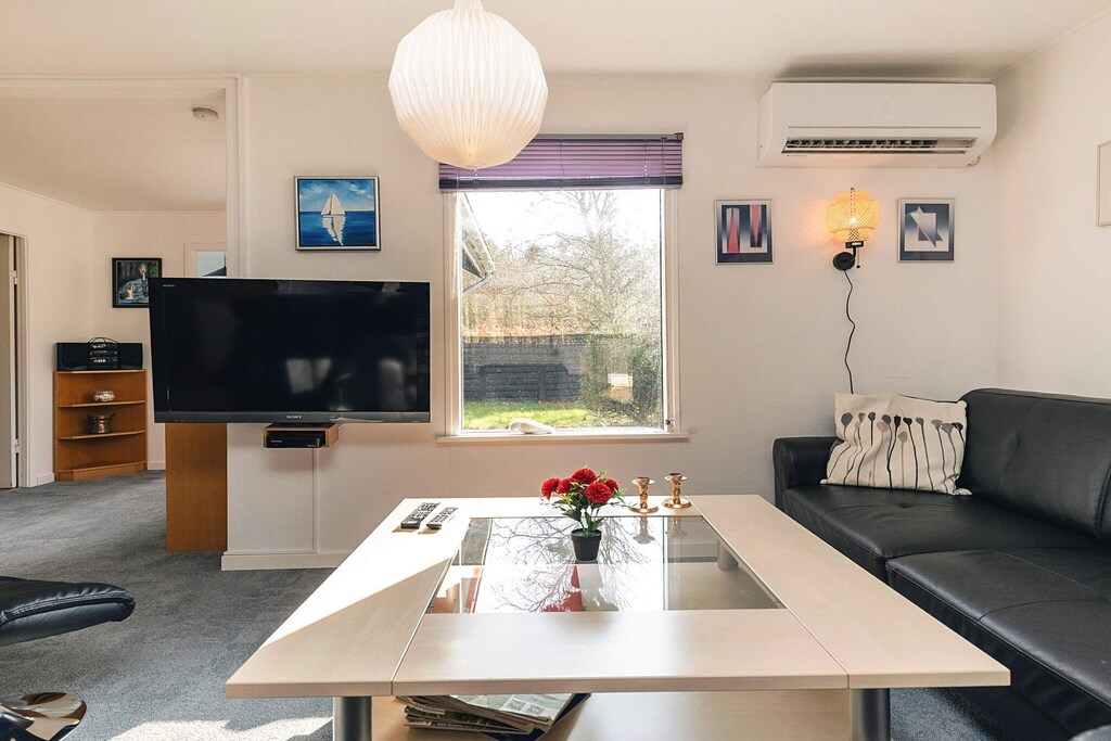 Holiday cottage in 1st row to the beach on an approx. 2700 m² large beach plot just 90 m from the Limfjorden. Bright decor with combined kitchen and living room. There is a wood-burning stove for a cold evening. TV with international channels, stereo system with CD player and internet. Access to the conservatory from the living room and on to the terrace. 3 bedrooms and an extra room with a single bed and a small hall with a table with basin adjacent to the garage. Great view of the Limfjorden from both house and plot. Large terraces and many good nooks where you can enjoy the view while the sun sets. There is a trampoline (usage at own risk/insurance). A refundable deposit might be charged closer to your check-in date. The security deposit ensures a smooth stay and covers any additional services or consumption charges.This deposit covers utilities consumed during your stay and any additional services that may be taken.The final amount will be adjusted based on actual meter readings, actual usage of extra services, and any remaining balance will be refunded within 21 days after checkout.This deposit simply acts as a prepayment for charges that you would anyways pay for, ensuring a seamless stay and check-out experience.
