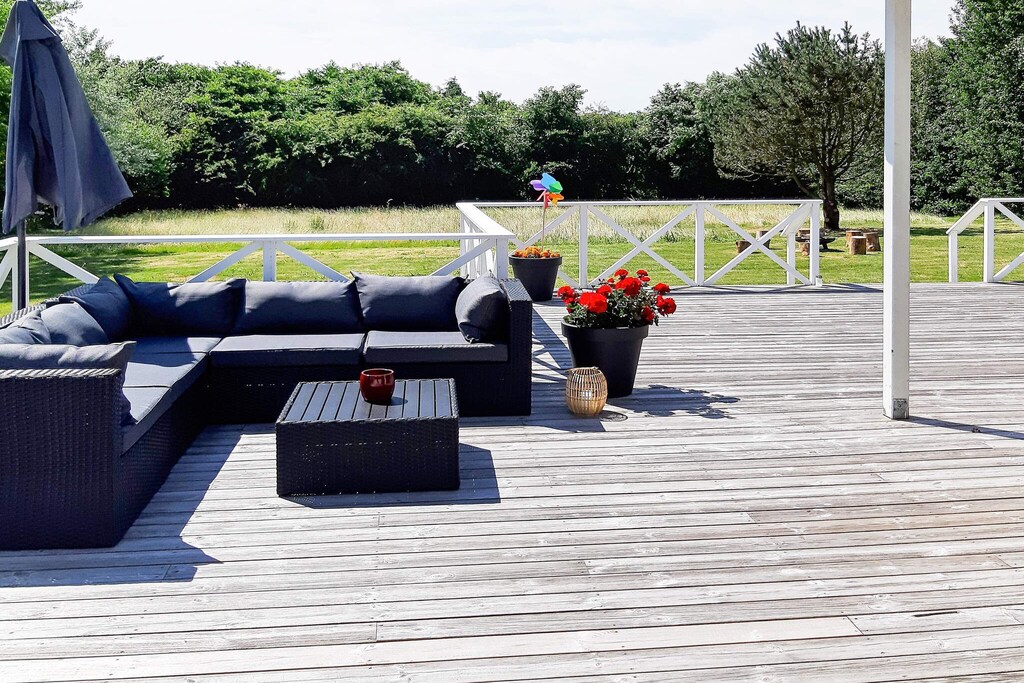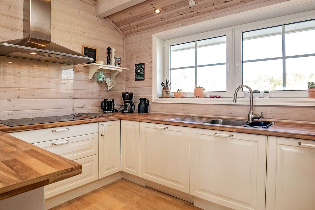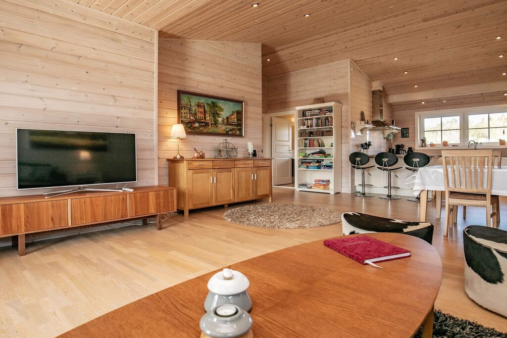 Bright and modern holiday cottage on large natural plot in scenic natural area at Knud Strand. Bright layout with combined kitchen and living room with comfortable furniture in the living room. Energy-friendly air-to-air heat pump in the living room. The bedrooms have electric radiators. The kitchen has ceramic cooker, fridge/freezer etc. 3 spacious bedrooms. The large bathroom has i.a. underfloor heating and a whirlpool where you can relax after an active day. From the living room you have access to the terrace of which a part is covered. No letting to youth and builder groups.A refundable deposit might be charged closer to your check-in date. The security deposit ensures a smooth stay and covers any additional services or consumption charges.This deposit covers utilities consumed during your stay and any additional services that may be taken.The final amount will be adjusted based on actual meter readings, actual usage of extra services, and any remaining balance will be refunded within 21 days after checkout.This deposit simply acts as a prepayment for charges that you would anyways pay for, ensuring a seamless stay and check-out experience.