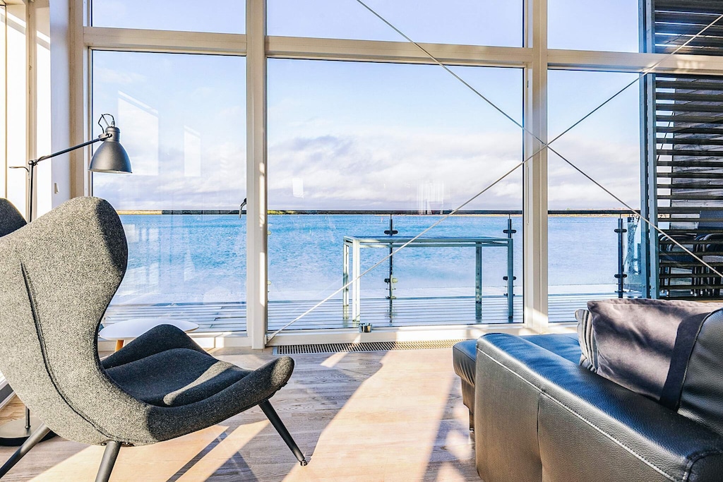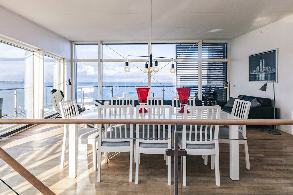 Holiday cottage with panoramic views of Stege Havn (port). The house was built in luxurious materials and is very bright. In order to enjoy the view the best there are no curtains or blinds in the living room. All beds are 140 cm wide. There is an outdoor whirlpool on the terrace from which you have an amazing view of the port. The modern facilities and 3 bedrooms mean the house is suited for more families sharing or the large family. There is a grill for cosy barbecues. During July and August there is a local town market every Tuesday just around the corner.