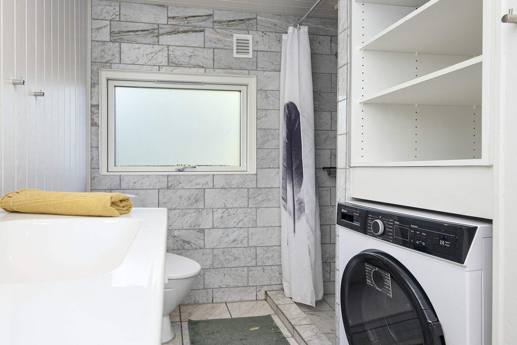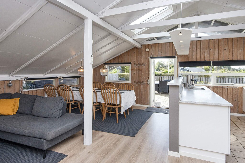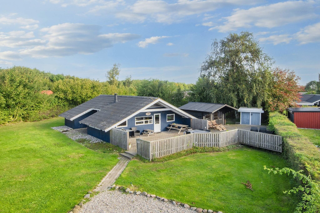 In Skovmose you will find this spacious cottage with kitchen / living room, where the light almost pours in via the large windows to the south / west and a cozy TV corner, where you will feel really comfortable. There are three separate bedrooms with double beds, so the distribution of the beds will be an easy matter. Outside, a large terrace area awaits almost all the way around the house. In the garden you will also find a shelter, which will surely be loved by the children. There is a fire place right by the shelter, so you can have fun in the evening with a fire and spend the night in the open air. There is also a swing set for the little ones and the large lawn invites you to play and have fun. Not for rent to youth groups.
