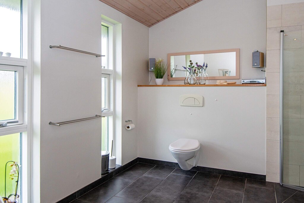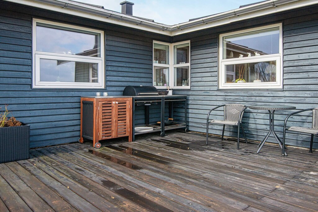Beachfront view cottage with both whirlpool and sauna. By Mommark on Sydals is this cottage with a fantastic view of the water and a nice, secluded location despite the location among other cottages. Here is a nice atmosphere and the house is bright and inviting with a large window facing the water. The house is well furnished with a good layout. There is an entrance hall, a large living room that is connected to the kitchen and the dining area, which together form a large bright room with a sloping ceiling and a view of the sea. From here there is access to the house's lovely terrace. In addition, there are three good rooms and a large bathroom with both whirlpool and sauna. There is also a large wooden terrace that basically goes all the way around the house so the sun and views can be enjoyed all day. From the house it is only a few minutes walk to the wide, child-friendly beach and not least the popular Mommark Marina, which is completely undisturbed and idyllic with views of the Little Belt and the Baltic Sea. Here you will also find a cozy little cafe right down to the harbor and beach. Not for rent to youth groups.