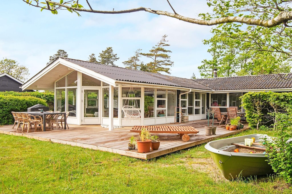 This bright and inviting holiday home is located near Skaven Strand, just about 600 meters from Ringkøbing Fjord, offering an ideal setting for a relaxing getaway. The property is well maintained and thoughtfully furnished to ensure comfort and convenience throughout your stay. The house features three bedrooms: two with double beds and one with a single bed. At the heart of the home is a spacious kitchen, dining, and living area designed for family life. From the kitchen, you have a clear view and direct access to the conservatory. Next to the kitchen, an activity table with various games and a gaming console provides hours of entertainment. Comfortable furnishings, including a daybed, offer space for relaxation and naps. The home is equipped with an energy-efficient heat pump, maintaining a pleasant indoor temperature year-round. Step outside to the large wooden terrace directly accessible from the living room, perfectly positioned to enjoy the sun throughout the day. The property sits on a large natural plot, part landscaped as a garden and part left in its natural state, providing plenty of space for outdoor activities and relaxation. This holiday home combines a bright, well-designed interior, modern amenities, and a spacious outdoor setting, making it ideal for families or small groups seeking a peaceful stay close to Ringkøbing Fjord. Please note: rental to youth groups is not permitted.A refundable deposit might be charged closer to your check-in date. The security deposit ensures a smooth stay and covers any additional services or consumption charges.This deposit covers utilities consumed during your stay and any additional services that may be taken.The final amount will be adjusted based on actual meter readings, actual usage of extra services, and any remaining balance will be refunded within 21 days after checkout.This deposit simply acts as a prepayment for charges that you would anyways pay for, ensuring a seamless stay and check-out experience.