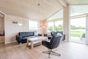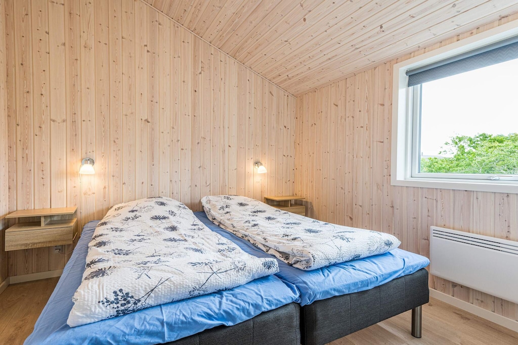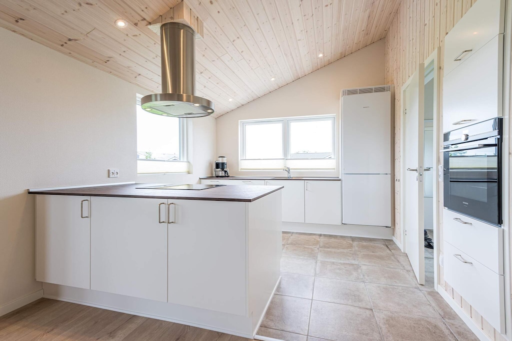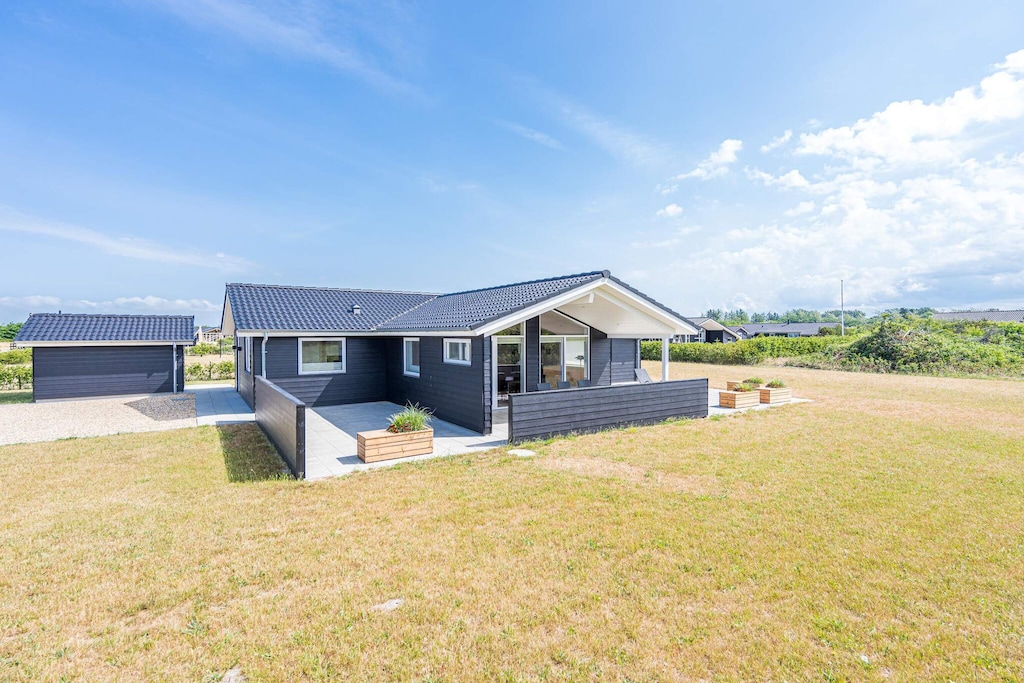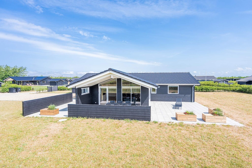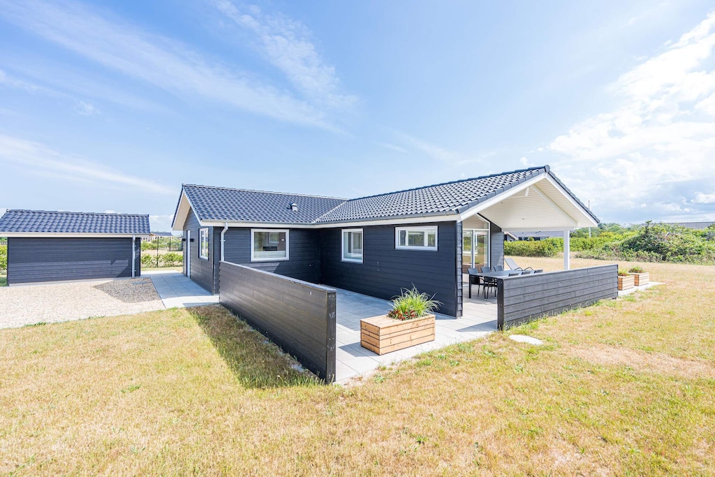 Bright and modern vacation home located on a lovely plot in Skaven Strand. The cottage was completed in 2022 and is spacious and inviting throughout. The living room, dining room, and kitchen are open plan, and the living room also has direct access to a lovely, partially covered terrace with garden furniture and sun loungers.The well-equipped kitchen is perfect for cooking, and while the steaks are sizzling in the pan, you can keep an eye on the rest of the family's social activities. The heat pump is centrally located in the house, contributing to a comfortable indoor climate all year round.The cottage can accommodate 6 guests, and with 3 spacious bedrooms - 2 of which have double beds - and 2 bathrooms, one of which even has a spa bath, there is plenty of room for everyone.A large utility room with a washing machine, dryer, sink, and plenty of closet space also serves as the entrance to the cottage, and here, practicality has really been taken into consideration. The cottage has tile floors in the kitchen, utility room, and both bathrooms. The rest of the house has light, practical wooden floors.Skaven Strand is a wonderful area with activities for the whole family. Take a walk along the beach or visit the small, cozy harbor. Head to the playground, take a picnic basket to the bonfire hut by the harbor, or visit the campground's ice cream shop—everything is within walking distance of the cottage.A really lovely vacation home in Skaven Strand with free final cleaning!
