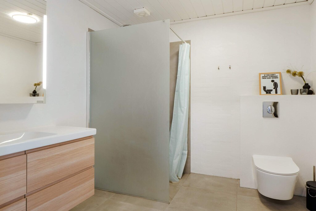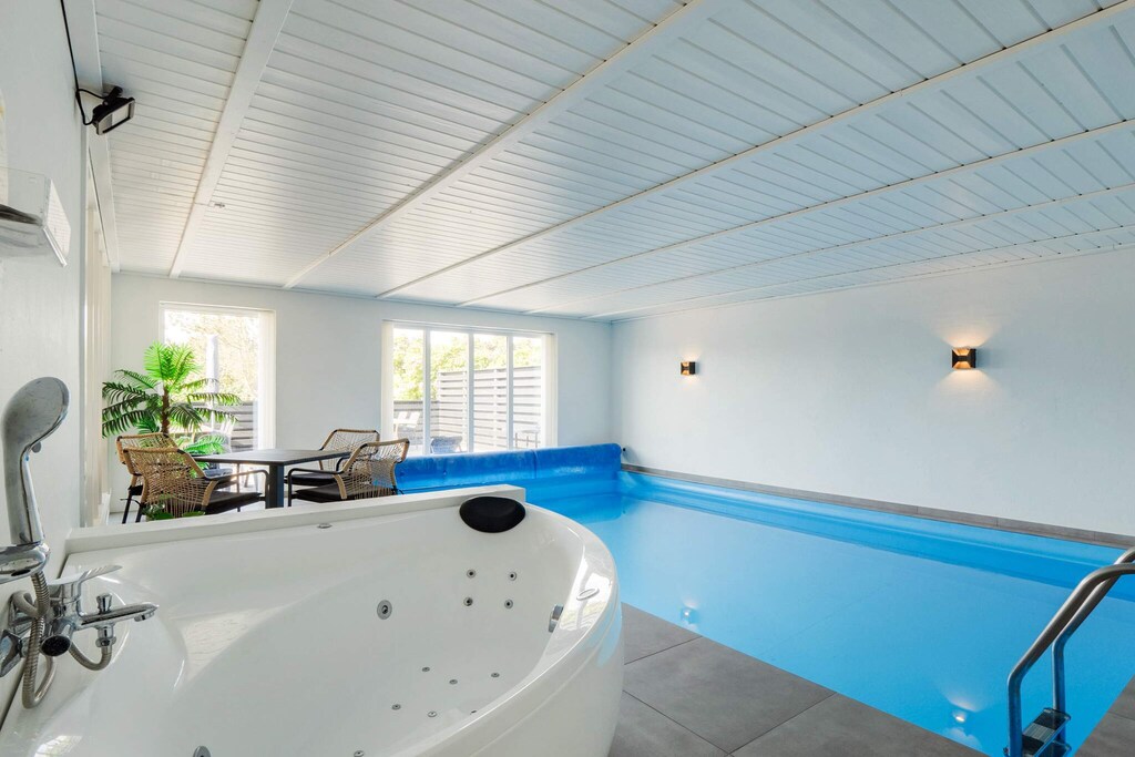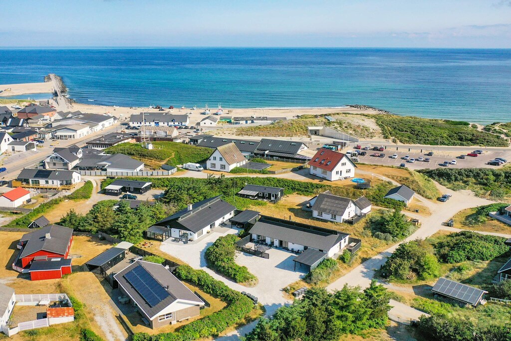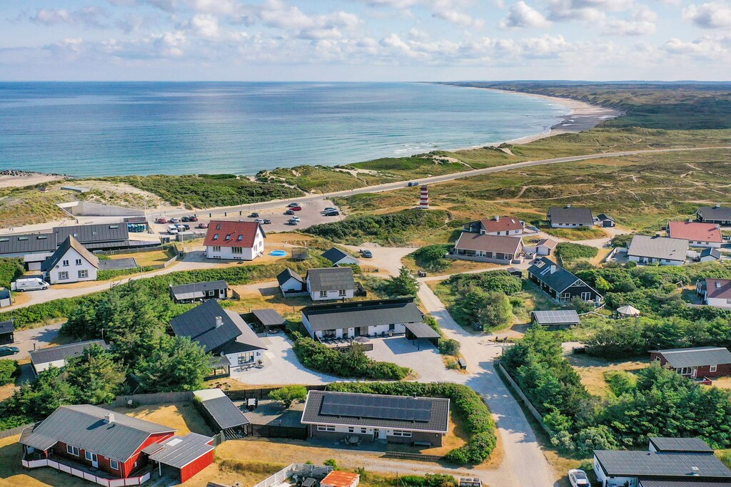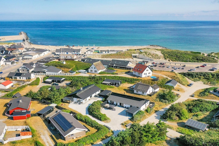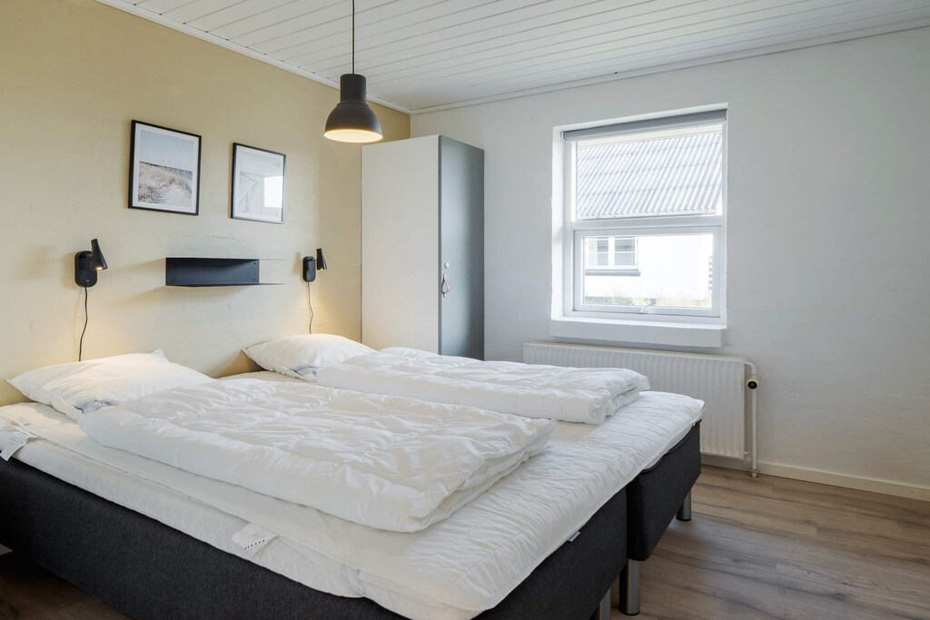 Completely renovated, bright, and well-appointed vacation home with swimming pool, hot tub, and sauna, centrally located in Vorupør within walking distance of the beach, shops, cafes, and restaurants. The house was completely renovated in 2023. The bright, modern pool room has a 20 m2 swimming pool, a hot tub for 2 people, and a sauna for 4 people. There is also light furniture so you can sit by the edge and keep an eye on the kids playing in the water. The large kitchen/family room is the natural focal point of the house, where you can gather. Well-equipped kitchen with induction hobs, dishwasher, microwave, coffee machine, and fridge/freezer. Open connection to a spacious dining area with seating for 10, so you can enjoy good meals, play board games, etc. Last but not least, there is also a corner sofa and armchairs, a wood-burning stove for cold evenings, and a TV with both German and Danish channels. From the kitchen/family room, you also have windows overlooking the pool room. The sleeping areas are divided into four spacious bedrooms. Three of the bedrooms are furnished with double beds, bedside lamps, and wardrobe space. The last room is furnished with four bunk beds. The lower beds are 90x200 cm and the upper beds are wall-mounted beds measuring 80x200 cm. All beds have box mattresses. There is also a high chair and cot for the little ones. Your stay can also be enjoyed outdoors, where there are several terraces. In front of the house, there is a large, south-facing terrace with space to gather for meals and socializing. There are also four sun loungers here. On one side of the cottage, there is also a smaller terrace with garden furniture. There is direct access from the living room to the large terrace. A few minutes' walk from the house (approx. 150 m) there is a Clever charging station where you can charge your electric car.Not available for rental by youth groups or construction crews.A refundable deposit might be charged closer to your check-in date. The security deposit ensures a smooth stay and covers any additional services or consumption charges.This deposit covers utilities consumed during your stay and any additional services that may be taken.The final amount will be adjusted based on actual meter readings, actual usage of extra services, and any remaining balance will be refunded within 21 days after checkout.This deposit simply acts as a prepayment for charges that you would anyways pay for, ensuring a seamless stay and check-out experience.