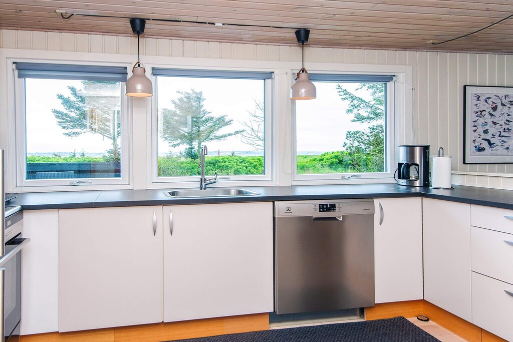 Well-located summer cottage with panoramic views of the Limfjord, located only about 100 meters from the water with a child-friendly beach. Nearby is a small lagoon, which is also used by surfers and kayakers. The area is known for oyster safaris and mussel tours, bird life, and seals that swim curiously by. The cottage's garden offers ample opportunity to enjoy your vacation in peace and quiet, as well as the opportunity for ball games and play. In addition, there are several cozy nooks on the large 3,150 sqm plot, which are ideal for reading a good book while enjoying the view of the waves on the Limfjord. The house was renovated in 2022 and is energy efficient with a heat pump, thereby reducing consumption. The vacation home is bright and inviting, and practically furnished with a combined living room/kitchen. The living room has comfortable furniture, free internet, and a flat-screen TV with Chromecast, where you can stream your own TV services.Danish channels are streamed via the YouSee app and German channels via satellite. Nice newer kitchen with ceramic stove, range hood, microwave, coffee maker, toaster, refrigerator/freezer with at least 60 liters of freezer capacity, and dishwasher. Stylish new bathroom with shower, bathtub, toilet, and underfloor heating. The house has three bedrooms, including one room with a double bed (160 x 200), one room with a small double bed (120 x 200) + a bunk bed, and one room with a bed (90 x 200) + a bunk bed. The house has several open terraces with good garden furniture, table and bench sets, sun loungers, and a gas grill, where you can enjoy dinner while the sun sets over the Limfjord. There is also a closed shed/covered terrace where you can seek shelter from the weather and wind. There is also an outdoor shower with both cold and hot water, so you can easily rinse off after a dip in the waves. The house also has a campfire site where the whole family can enjoy roasting sausages and marshmallows or baking bread on a stick. Not available for rental to youth groups.A refundable deposit might be charged closer to your check-in date. The security deposit ensures a smooth stay and covers any additional services or consumption charges.This deposit covers utilities consumed during your stay and any additional services that may be taken.The final amount will be adjusted based on actual meter readings, actual usage of extra services, and any remaining balance will be refunded within 21 days after checkout.This deposit simply acts as a prepayment for charges that you would anyways pay for, ensuring a seamless stay and check-out experience.