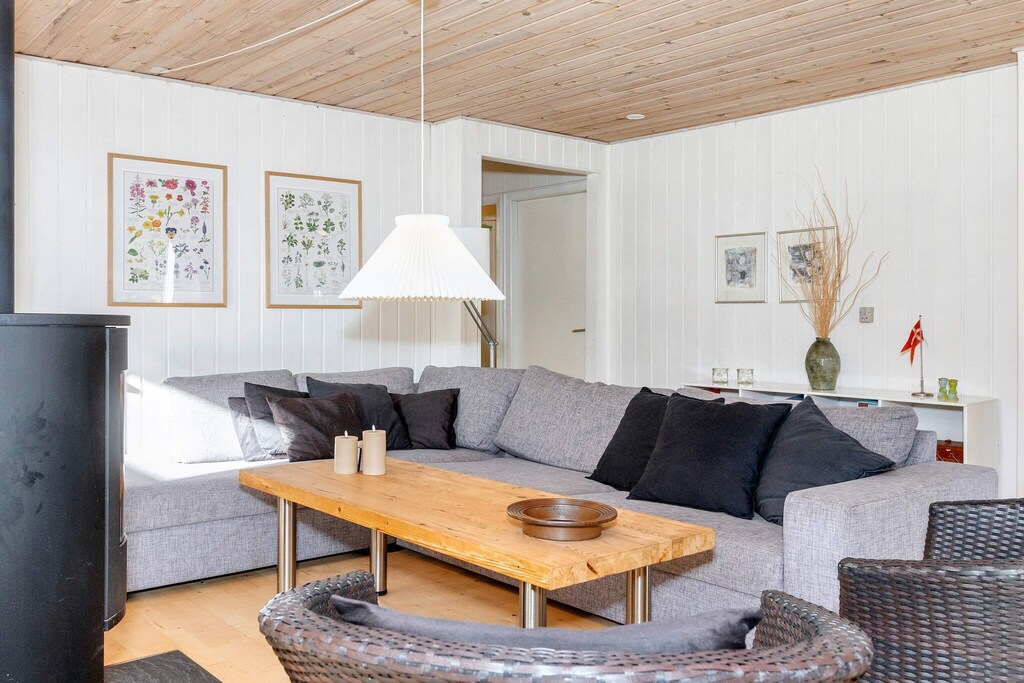 Spacious cottage located on a good natural plot with trees and lawn just approx. 150 m from the Limfjord, where there is both a jetty and a mooring for your own boat. There is a TV with Chromecast and wireless internet. It is possible to watch all DR & # 180 ;s free programs. The cottage is well furnished with two good bedrooms in one with a double bed and one with two berths. Access to the annex with two bedrooms with double beds is via a covered terrace. In the garden you will find a campfire. Not for rent to youth groups
