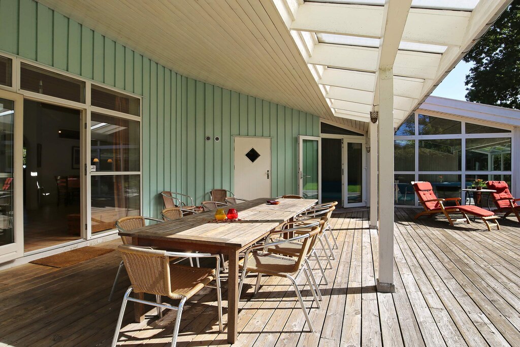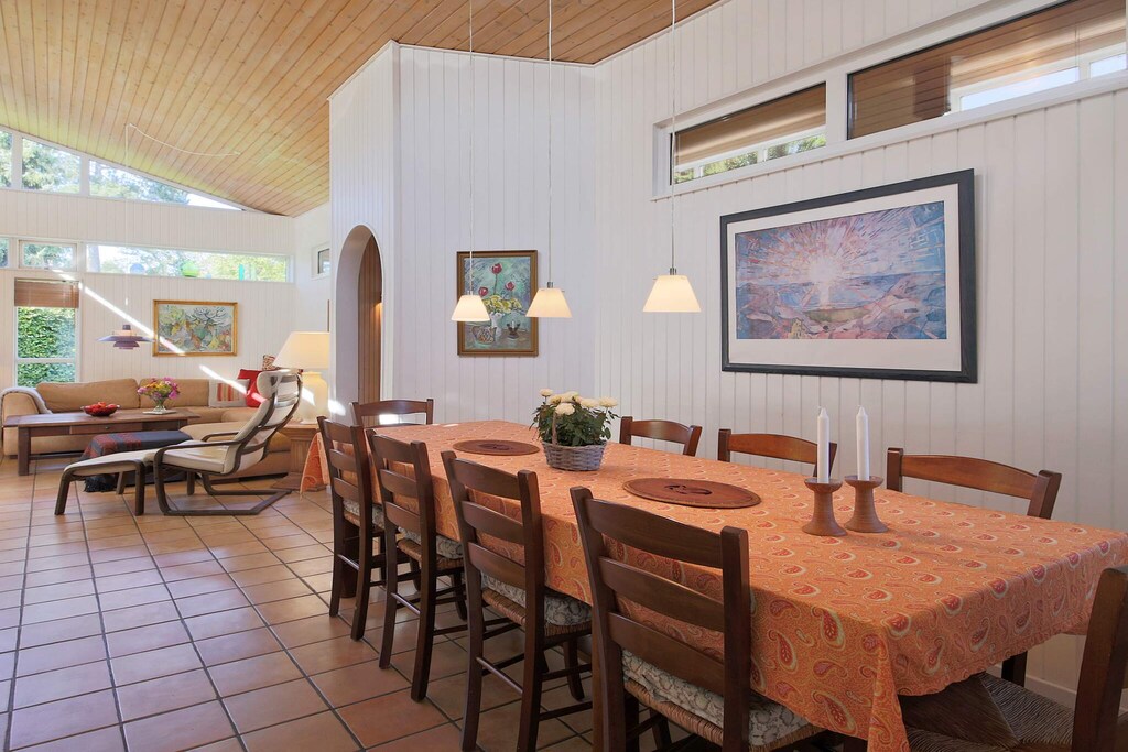 Large, architect-designed cottage with beautiful swimming pool area with saltwater pool (6.0 x 3.2 x 1.4 m), counter-current system, 2-person whirlpool, shower and access to the house's lovely sauna. The cottage is located on a large garden plot in very beautiful nature not far from Tisvilde town and beach. The house has a good, partly covered terrace area with garden furniture. The beautiful and well-appointed kitchen is i.a. equipped with dishwasher, microwave, small freezer, convection oven and stove with ceramic hobs. In the large and spacious dining / living room, from which there is direct access to the covered part of the terrace area, you will find the wood burning stove, DVD player, video and stereo with CD player. An energy-saving air-to-water pump has been installed for the swimming pool as well as an air-to-air pump for the swimming pool department and the rest of the house. There is free wireless internet connection. The house sleeps in four good double bedrooms and two beds with foam mattresses on the loft. The loft is suitable for children. The house's two bathrooms are both with underfloor heating and shower. Utility room with washer and dryer. Additional equipment includes a cot and high chair. The house is heated using heat pumps, wood stove, underfloor heating in living room, dining room, hallway, utility room and pool room as well as heating panels in all 4 bedrooms, living room dining room, kitchen and utility room. There is a carport for two cars as well as a sandbox and swing on the plot. The cottage has a really good location and is very suitable for 2 families or more couples. There are only approx. 800 m from lovely beach and not far from forest, tennis courts, cinema, restaurant, cafes and shopping. Not for rent to youth groups.