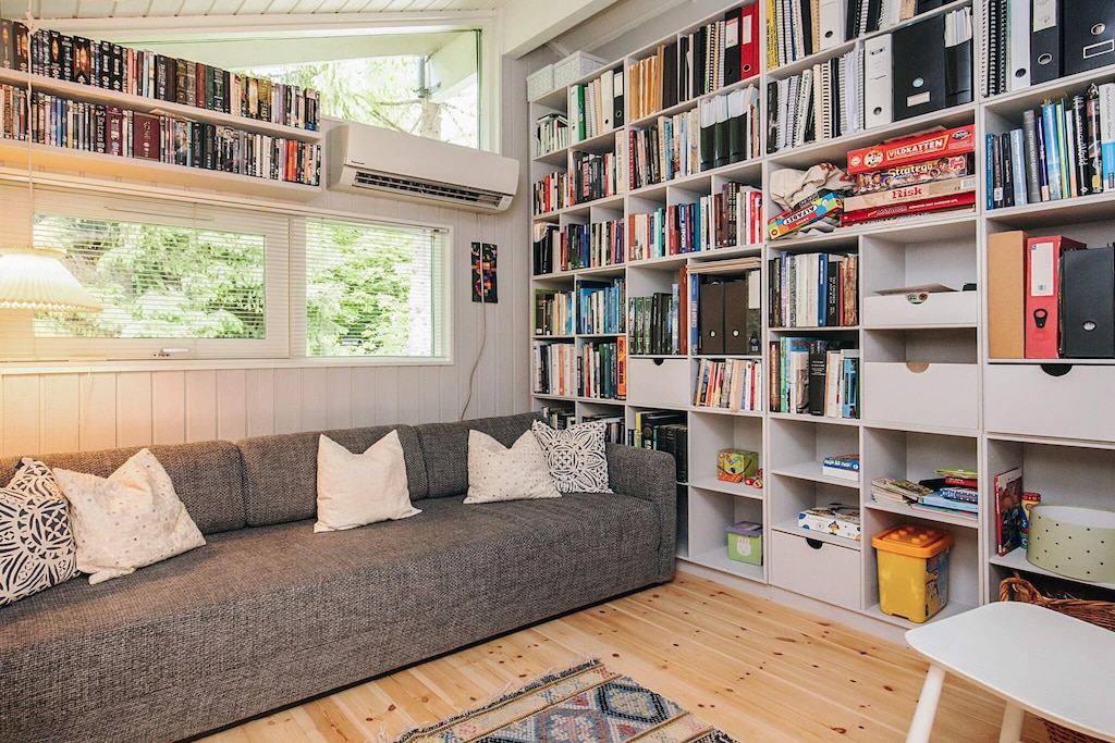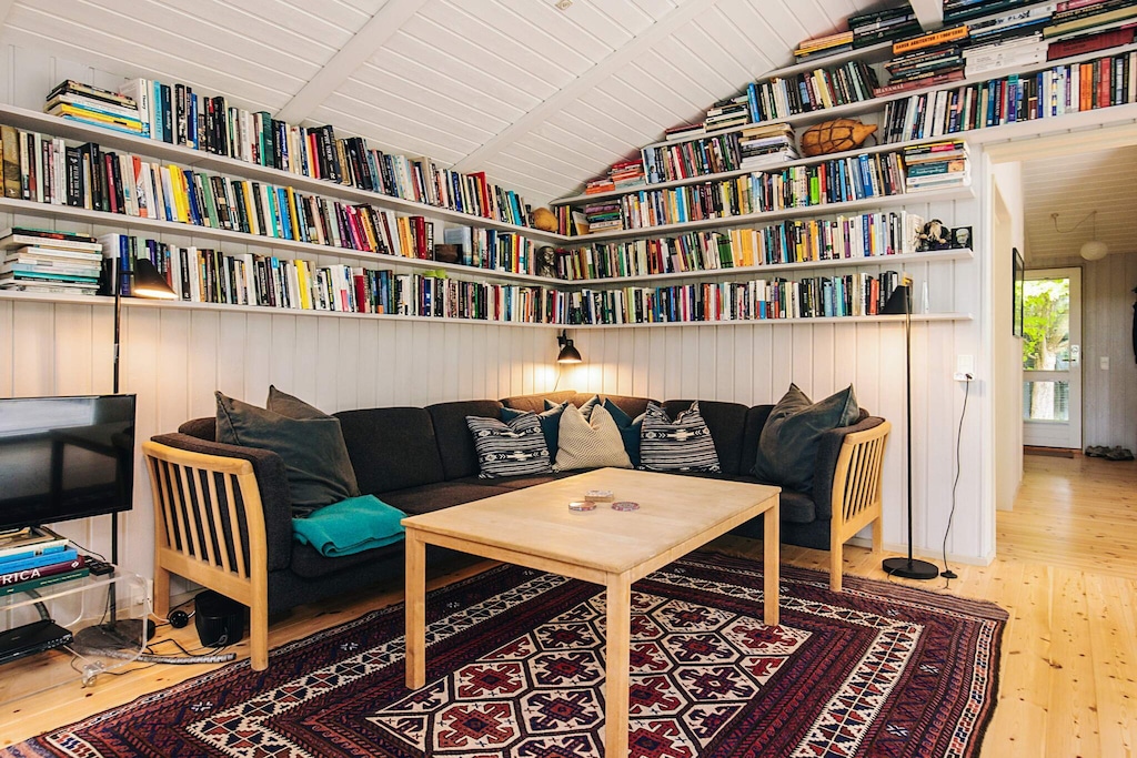 Køkken var rigtig godt med rigt udvalg af udstyr, dejlig beliggenhed i rolige omgivelser, måske for mange bøger alle vegne