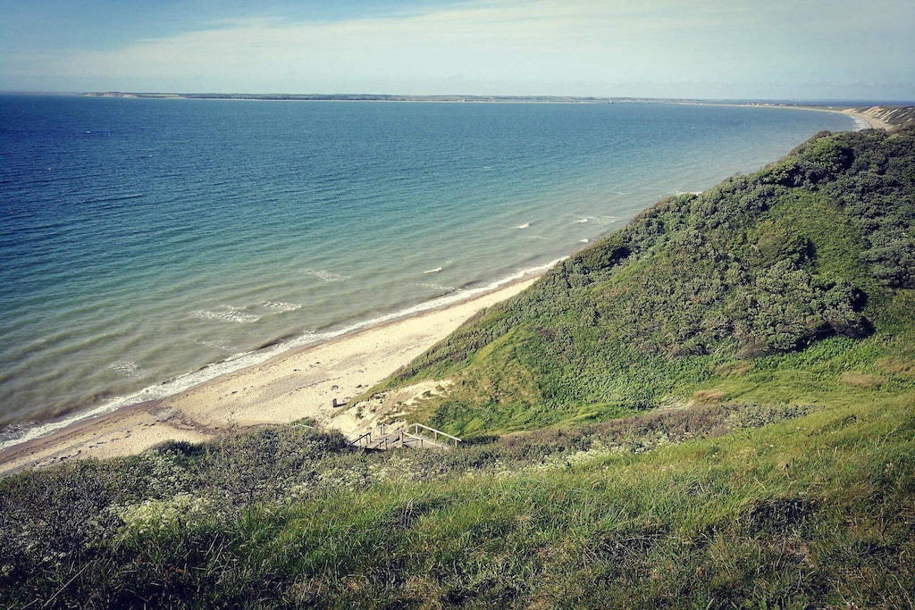 Rumfordelingen er rigtig fin, Det er muligt at lukke af til de soverum man ikke bruger, når man fx rejser alene, Det gør slutrengøringen nemmere, Haven er en naturgrund med græsplæne, der er godt lukket af til naboerne, så man føler sig i fred, Den store træterresse med stor skydedør fra stuen er dejlig også fordi en stor del af den er overdækket, Det er superhyggeligt og også meget praktisk,