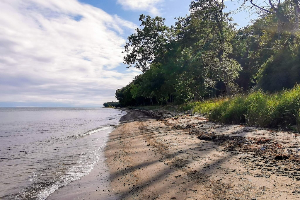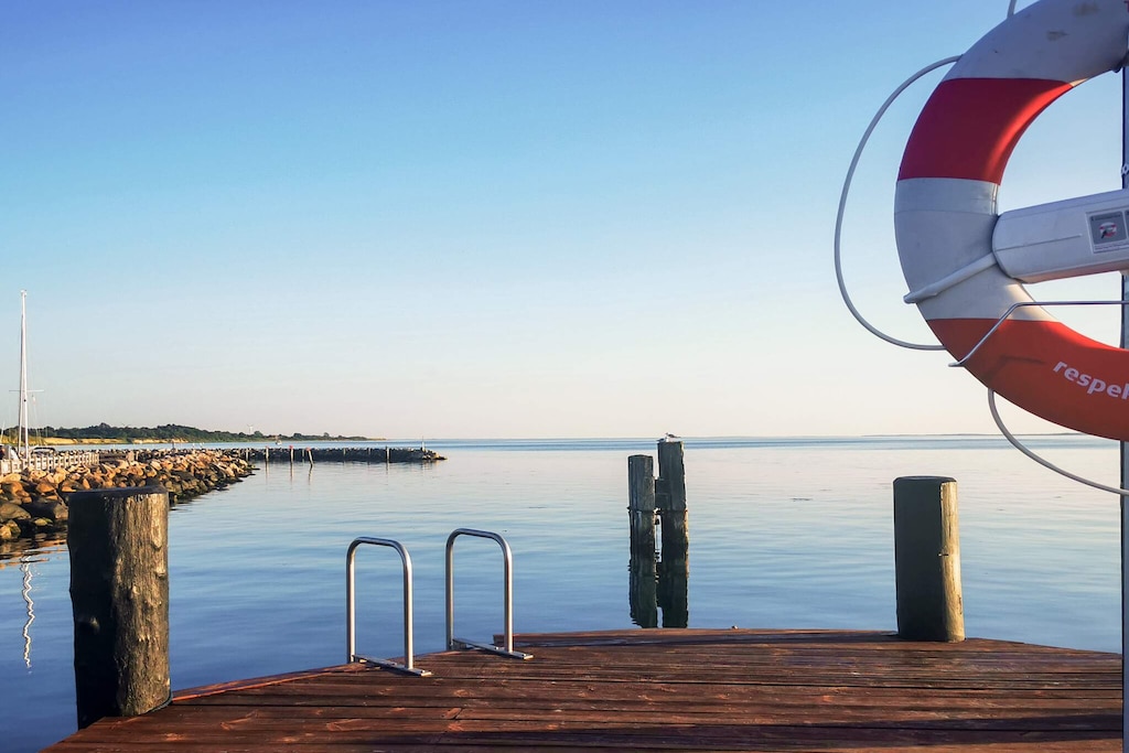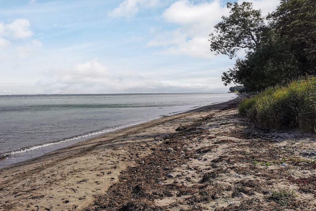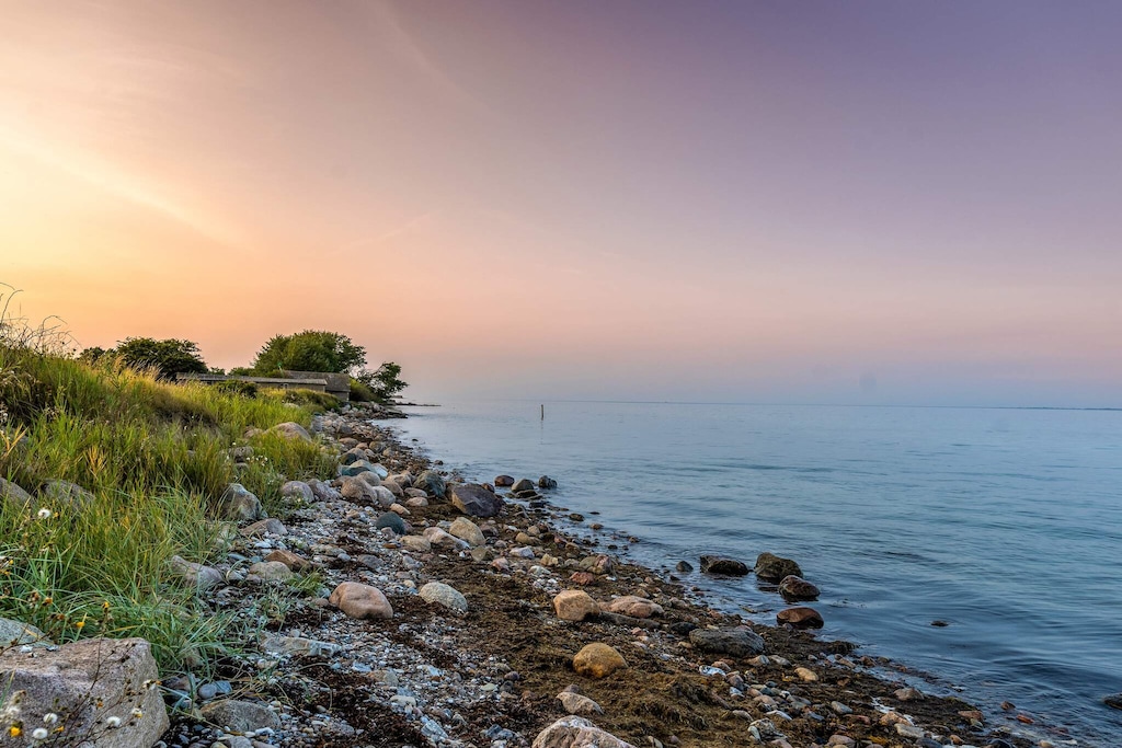 Holiday home located in a rural setting by Snøde with a nice view over fields and with the Langelandsbæltet in the background. The cottage is from 1822 and renovated in 2000. There is an open kitchen / family room equipped with i.a. ceramic hobs, convection oven and wood burning stove. On the 1st floor you will find two double bedrooms. Note: in some places the ceiling height is limited. Not for rent to youth groups.