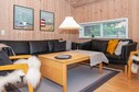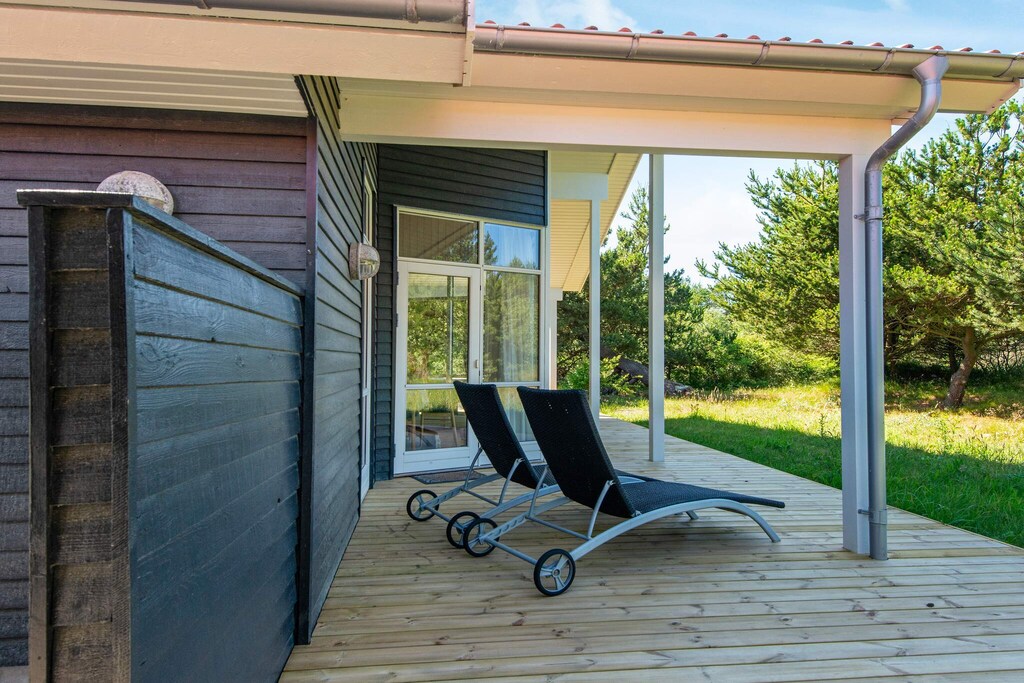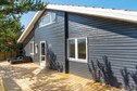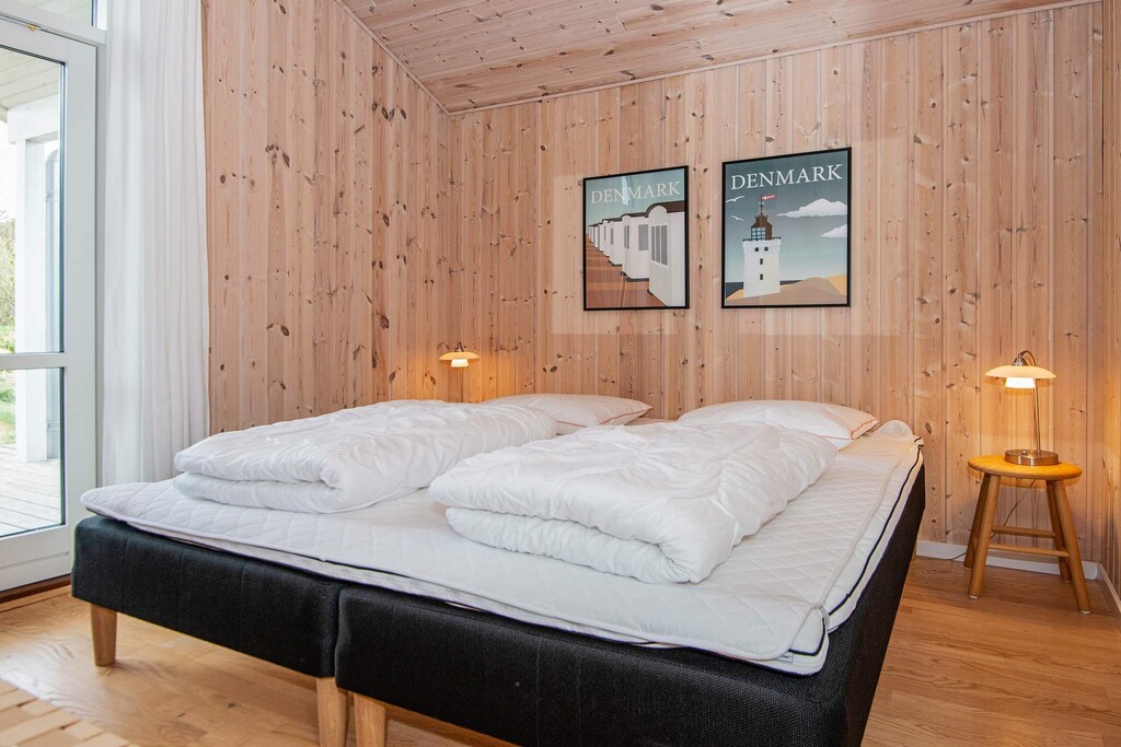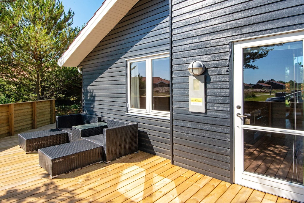 In Fjand you will find this well-equipped and well-kept cottage with whirlpool and a beautiful view of the surrounding nature from the terrace and living room. The heart of the cottage is the combined living and dining room, located in the open extension of the well-equipped kitchen. In the living room there is a large window that provides a good light and where you can sit in the living room and enjoy nature while you snuggle by the wood stove on a cool summer evening. The cottage is i.a. equipped with washer, dryer, dishwasher, free, wireless internet, DVD player and TV with Chromecast and German TV channels. In addition to the bathroom with whirlpool and underfloor heating, the house contains three bedrooms divided into two with double beds and the latter is furnished with two single beds. The house is surrounded by a large wooden terrace, which allows you to find more sheltered nooks, so you can enjoy the sun on a sunny summer day. Not for rent to youth groups.