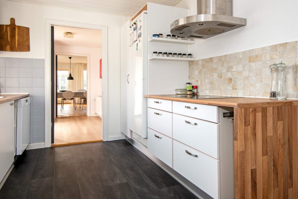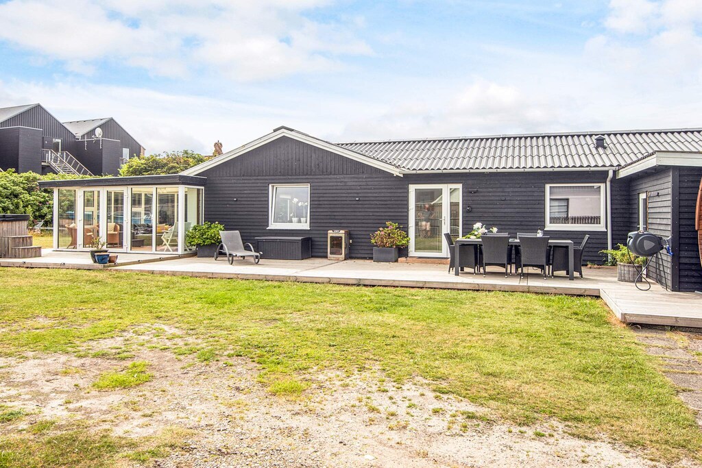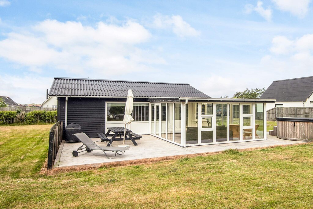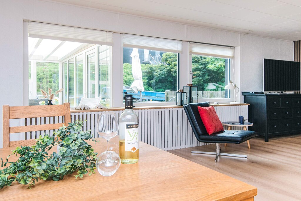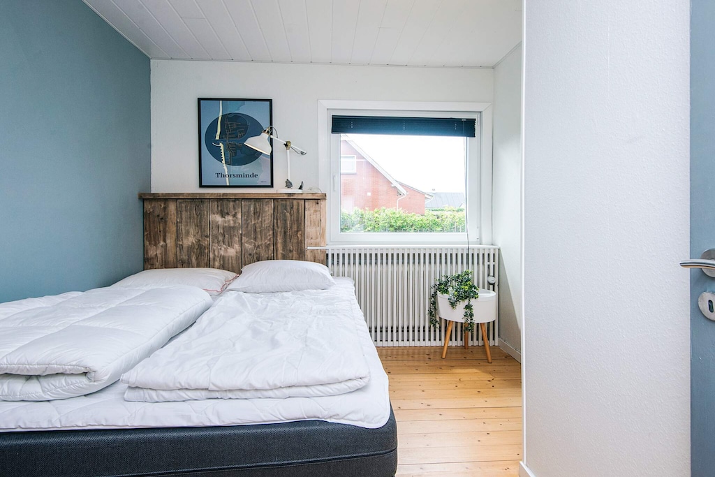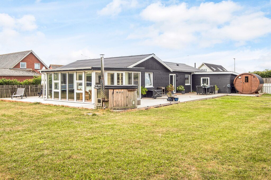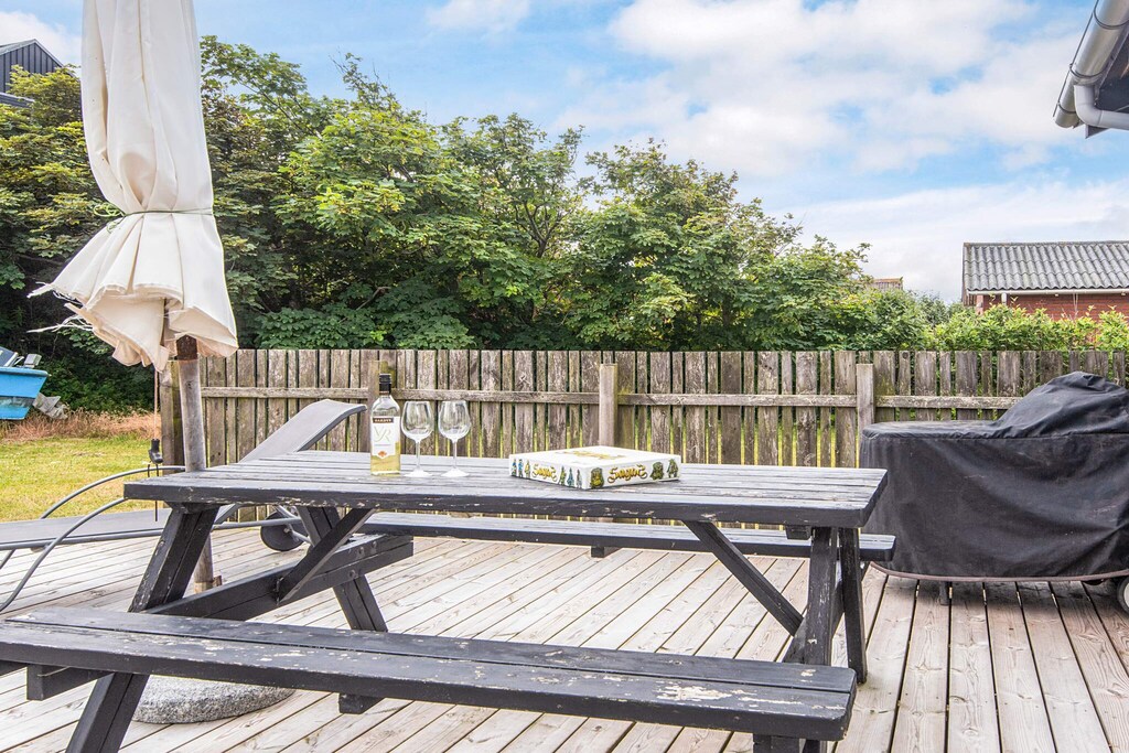 Well-appointed cottage located in the middle of Thorsminde town close to both the harbor, the North Sea and Nissum Fjord. The well-appointed living room, which i.a. contains a large TV, has access to a 25m2 large covered terrace, from which you can overlook the garden and enjoy the sun and outdoor life indoors, on cool days. The well-equipped kitchen has a cozy dining area. The 3 rooms each contain a double bed, and in 2 of the rooms there is a TV installed, of which on one TV it is possible to play playstation. On the east-facing terrace you can enjoy the morning sun while having your morning coffee, and on the south-west facing terrace you can enjoy the sun in the afternoon and the sunset in the evening from the wilderness bath. Only 200 m. From the house there is the opportunity to fish along the piers by the harbor. There is an outdoor cleaning area to clean the freshly caught fish, after which they can be cooked either on the grill or in the smoke oven. At the end of the road there is a large playground, soccer field and outdoor fitness. Nissum fjord with shallow water and good swimming opportunities is just 200 m. From the house In this house you have the opportunity to experience the authentic Thorsminde with fish auction in the summer and stockfish hanging in the gardens.