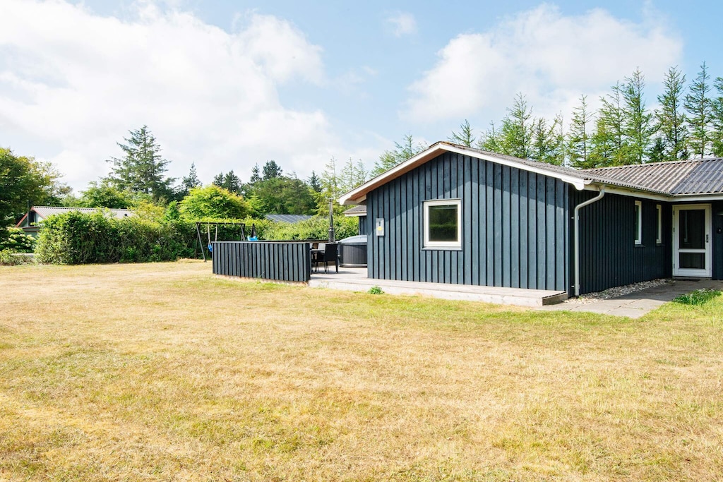 This spacious 106 m² holiday home is located just 400 meters from the North Sea coast, offering an ideal retreat for families, friends, and pets. Set on a landscaped 1,110 m² plot, the property provides ample space for children and dogs to play safely while enjoying the fresh sea air and scenic surroundings. The home features an open-plan living area with a cozy wood-burning stove and TV, creating a warm and inviting space for relaxation. The kitchen is fully equipped with a refrigerator, freezer, dishwasher, and washing machine, making it easy to prepare meals during your stay. The property offers three bedrooms—two with double beds and one with three bunk beds—plus family rooms, comfortably accommodating up to seven guests. There are two bathrooms, ensuring convenience for larger groups. Outside, the terrace features garden furniture and a charcoal grill, perfect for dining al fresco or enjoying sunny days. The property is non-smoking and includes play equipment, making it ideal for families traveling with children. Pets are welcome, giving everyone in the family the opportunity to enjoy the large garden and surrounding nature. The location provides easy access to the wide sandy beaches and dunes of the North Sea, as well as nearby plantations perfect for long walks. Guests can explore the charming coastal towns along the West Coast of Jutland, or visit local attractions such as the Jutland Aquarium, Mønsted Limestone Mines, Hjerl Hede, and the Sea War Museum. With energy-friendly heating and hassle-free Smart Lock check-in, this property combines modern comfort with easy access to Denmark’s stunning coastal nature. This holiday home is the perfect choice for a relaxing seaside escape, combining comfort, outdoor space, and proximity to beaches, nature, and attractions, making it ideal for families, friends, and pet owners alike.A refundable deposit might be charged closer to your check-in date. The security deposit ensures a smooth stay and covers any additional services or consumption charges.This deposit covers utilities consumed during your stay and any additional services that may be taken.The final amount will be adjusted based on actual meter readings, actual usage of extra services, and any remaining balance will be refunded within 21 days after checkout.This deposit simply acts as a prepayment for charges that you would anyways pay for, ensuring a seamless stay and check-out experience.