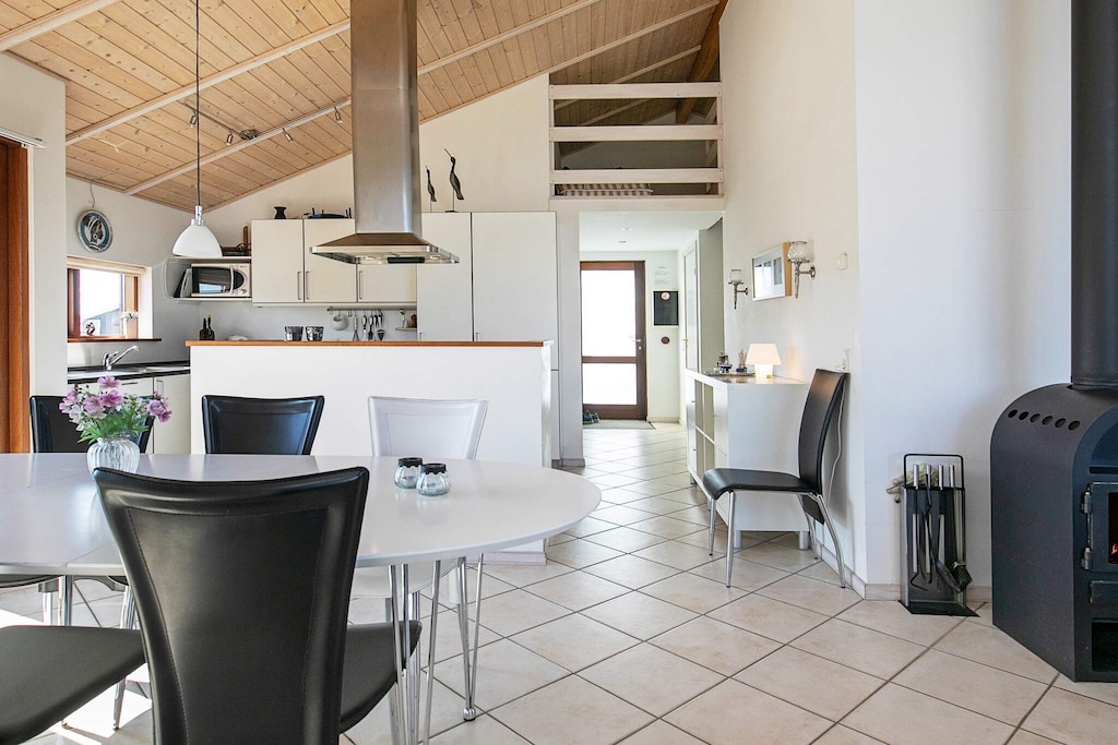 Well maintained quality cottage equipped with all modern amenities for a relaxing holiday. Ideally designed for one or two families. Light decor with bedrooms at either end of the house and bathroom with whirlpool and sauna. There is also a guest toilet. Tile floor in the living room and kitchen/dining area. Hardwood floors in all bedrooms. There is underfloor heating throughout the house. The partially enclosed terrace means you can sit undisturbed and sheltered at the house. The house is located in beautiful surroundings with panoramic views of Nissum Fjord and a short walk to the North Sea.A refundable deposit might be charged closer to your check-in date. The security deposit ensures a smooth stay and covers any additional services or consumption charges.This deposit covers utilities consumed during your stay and any additional services that may be taken.The final amount will be adjusted based on actual meter readings, actual usage of extra services, and any remaining balance will be refunded within 21 days after checkout.This deposit simply acts as a prepayment for charges that you would anyways pay for, ensuring a seamless stay and check-out experience.