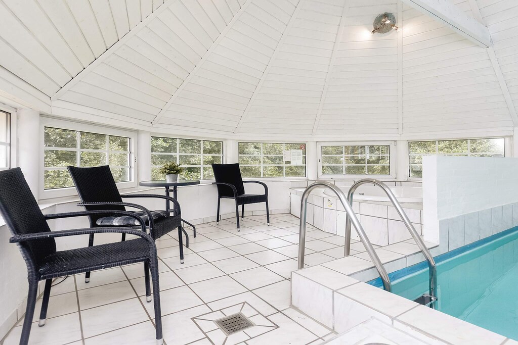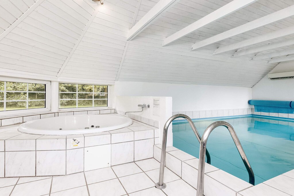 In a beautiful and peaceful, natural area in Marielyst you will find this cottage with large swimming pool, whirlpool for 4 people and a sauna. Open kitchen with fridge / freezer, microwave, coffee machine and dishwasher, the kitchen is combined with the living room, which contains i.a. stereo with CD, DVD player, TV and cable TV. There is also the Nintendo Wii for the kids' enjoyment. There is a high chair and cot for the little ones. The interior of the house with two sleeping compartments with four double bedrooms and two twin bedrooms makes it suitable for 2 families. In the pool area you will find a 21 m2 swimming pool, a whirlpool for 4 people and a beautiful area to have fun for many hours. Good bathrooms with shower and underfloor heating. There is a washer and dryer as well as energy saving air / air heat pump and wood burning stove. There are 2 air / air heat pumps and an air / water heat pump for the pool water. Large terrace area with plenty of space for cosiness, barbecue, sunbathing etc. Nice big reason for a lot of space for ball games, hide and seek games etc. Not for rent to youth groups.