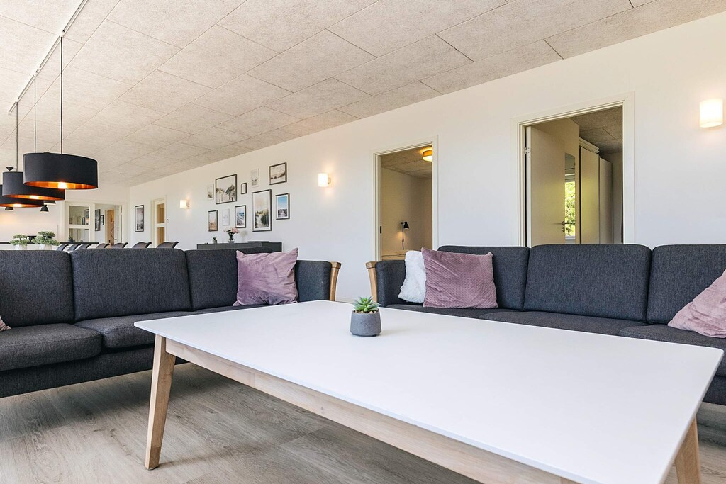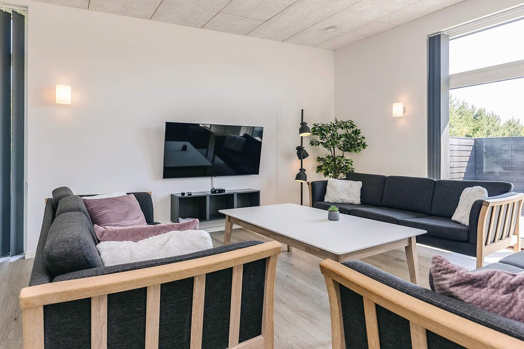 Modern and well-appointed holiday home with outdoor and indoor hot tubs, sauna and various activities located in Marielyst, approx. 900 metres from one of Denmark's best beaches. There is an activity room with billiards, table tennis, table football and PlayStation. The focal point of the house is the modern and bright kitchen/family room with dining and living area, where there is room for everyone. The kitchen is well equipped with appliances, including 2 dishwashers, 2 fridge/freezers, 2 separate ovens with grill, microwave, induction hobs, coffee machine and much more. The living room is beautifully and brightly decorated with free wireless internet, cable TV with many Danish and German channels, etc. In addition, there is DAB radio with Wi-Fi, so there are plenty of opportunities to entertain yourself and pass the time for both young and old. The holiday home is extremely well laid out and there are several bathrooms, all with underfloor heating. One bathroom has both a shower and a spa bath as well as a sauna. There are four bedrooms with double beds, one bedroom with two single beds and one bedroom with two large bunk beds for four people. There is a cot and high chair for the little ones. There is a heat recovery system throughout the house, which ensures a good and healthy indoor climate. There is a washing machine and tumble dryer. Large outdoor hot tub for seven people, which is covered and can be enjoyed all year round. Here you can gaze at the stars and enjoy nature. From the beautiful and bright living room and activity room, you can step out onto the large 105 m2 terrace, where there is a lounge area, and you can sunbathe, barbecue (gas barbecue, purchase your own gas) and relax. There is also a covered terrace of 50 m2, where you can enjoy the late summer evenings with a glass of rosé wine or similar. On the large grounds, there is a trampoline (use at your own risk/insurance), a fire pit, swings and a sandpit, football goals and various games for the garden. There are therefore plenty of opportunities for entertainment and activities. Free access to Svømmecenter Falster and Nordfalster Svømmecenter. Not available for rental to youth groups. There is an electric car charger at the holiday home, but please note that it only charges solar panels.A refundable deposit might be charged closer to your check-in date. The security deposit ensures a smooth stay and covers any additional services or consumption charges.This deposit covers utilities consumed during your stay and any additional services that may be taken.The final amount will be adjusted based on actual meter readings, actual usage of extra services, and any remaining balance will be refunded within 21 days after checkout.This deposit simply acts as a prepayment for charges that you would anyways pay for, ensuring a seamless stay and check-out experience.