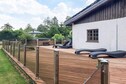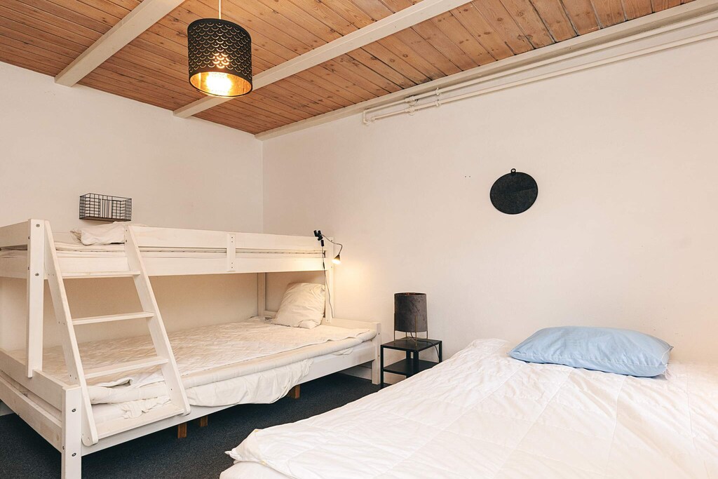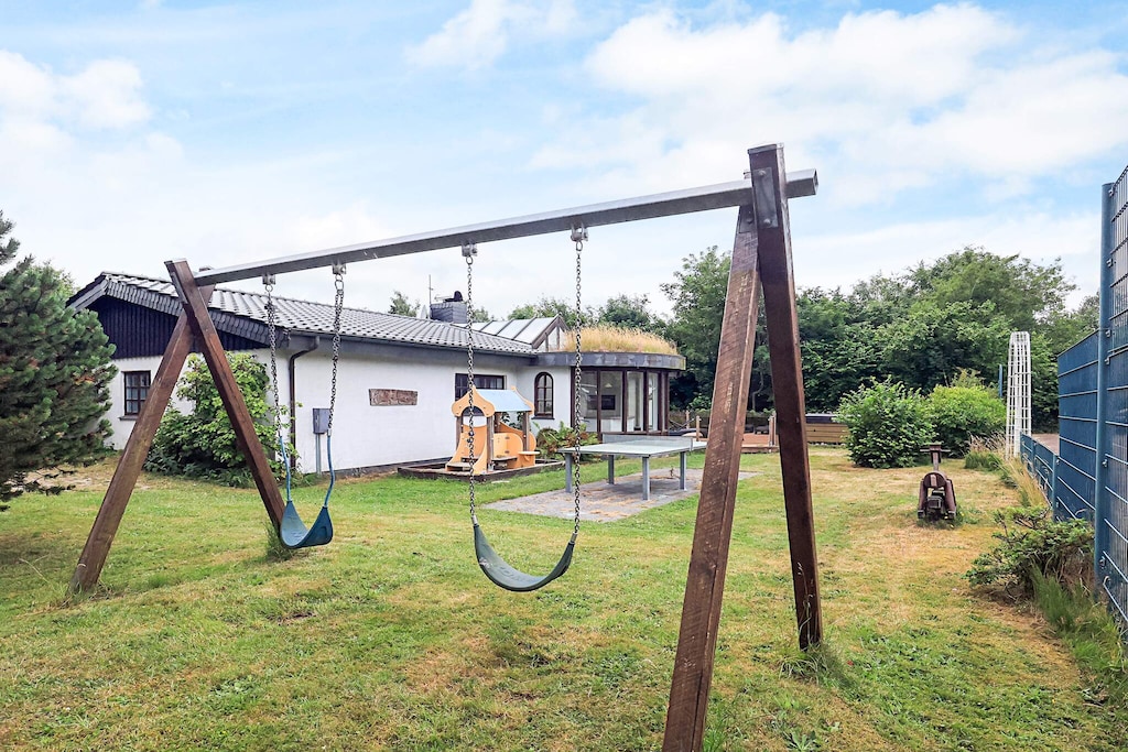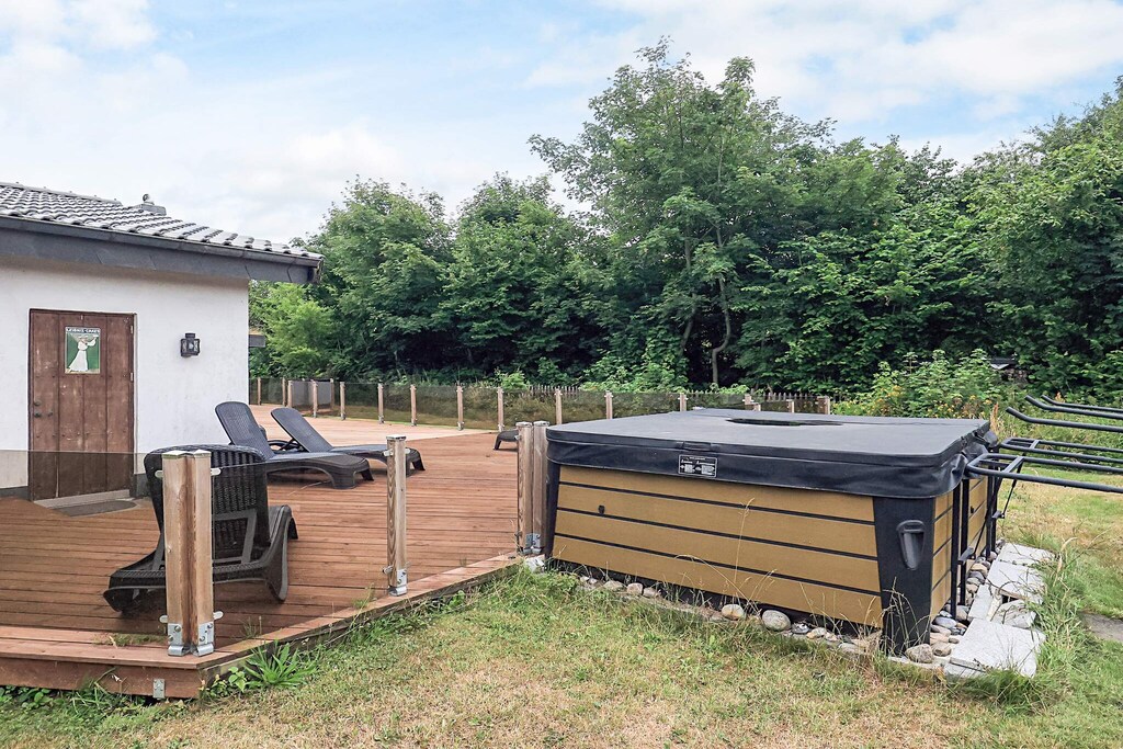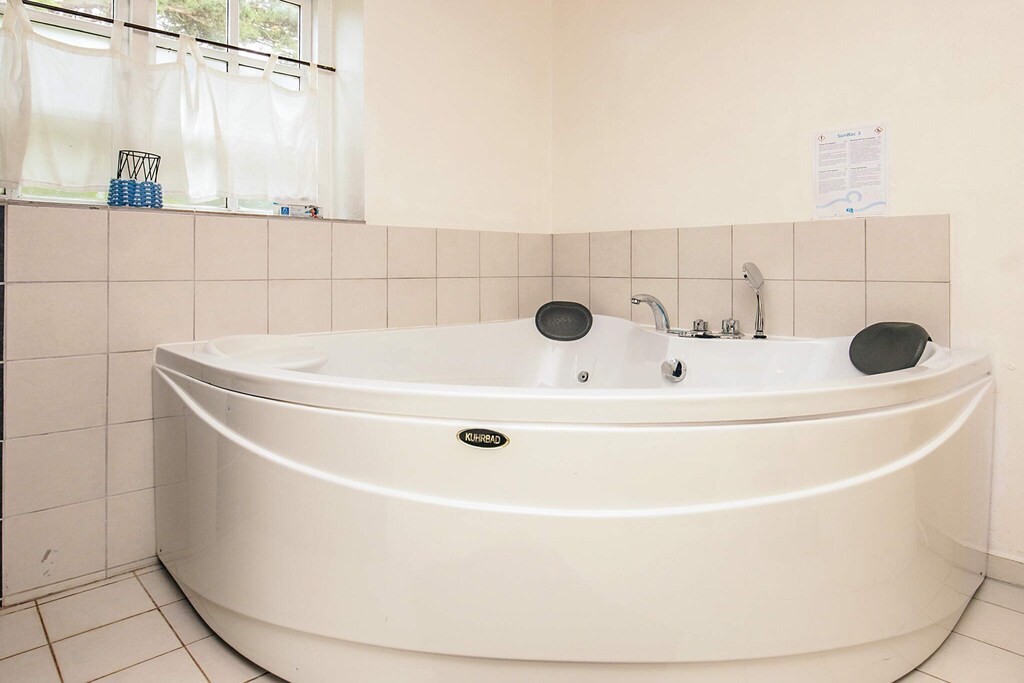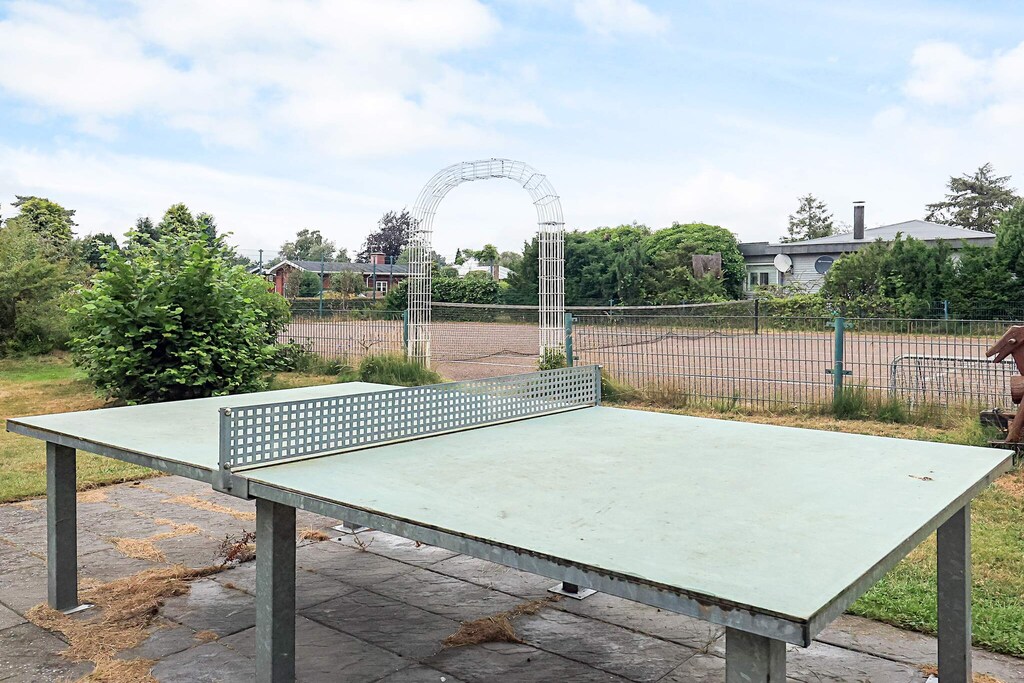 Only about 150 meters from Denmark's best bathing beach in Marielyst is the unique and modernized cottage with i.a. hot tub, sauna, activity room, free Wi-Fi, outdoor tennis court and basketball. The property is divided into 3 sections. In the middle of the house is the meeting point of the home, the open kitchen / family room with glass bay window, where from the cooking island there is a view to the tennis court and basketball. The kitchen is well equipped with i.a. microwave, 2 refrigerators, dishwasher m.m. There are 2 living rooms and the master bedroom with attached bathroom. In each of the 2 side wings there are separate bedrooms and bathrooms. The house has a total of 5 bedrooms with space for 16 people. Distribution in beds is: The first room is with a double bed, the second bedroom is with three single beds the third room is with one with a double bed and a bunk bed for a single bed upstairs and a single bed, the fourth room is also with a double bed and a bunk bed for a single seat upstairs as well as a single bed. The last and 5 bedrooms with a bed of 120 cm in width (actually best for two children) and a double bed with a bunk bed with single space upstairs. The house has many bathing facilities as well as 4 toilets. There is underfloor heating in many of the toilets. In a separate area is the sauna with wellness area. Washer and dryer are available. 6 times TV in the house with many German, Danish and several channels. 2 cots and high chair available. Of activities in the house there are i.a. billiards, darts, rowing machine, exercise bike, rip and play console. Furthermore, a room with the possibility of pilates / yoga, where the ribs are present. Outdoors on the large beautiful plot approx. 2,200 m2 there is a large tiled courtyard with several sun and cozy nooks, garden furniture and barbecue. Cozy fireplace for adults and children. For the little ones there is a swing, sandpit, play tower with slide and trampoline (used at your own risk / insurance). The closed private tennis court allows you to have many pleasant hours for both children and adults. You can also play basketball