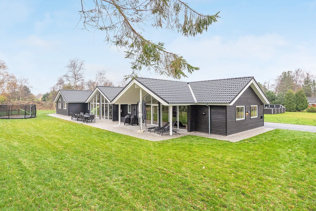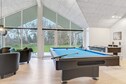 Spacious holiday home for 16 people with swimming pool, hot tub, sauna and activities located at the end of a cul-de-sac in Marielyst. The holiday home has its own swimming and wellness area, which includes a large indoor swimming pool with a water slide, Roman steps, and a counter-current system. The pool area also has a lovely hot tub and the holiday home's sauna, where you can recharge your batteries in the best holiday style. In the activity room of the pool cottage, you can play table tennis, billiards, darts, and PlayStation 4. If you want to take a break from the many games or just prefer to be a spectator, the activity room also has a bar where you can enjoy a cold refreshment. In the middle of the house, you will find the kitchen/family room and the cottage's wood-burning stove, which can heat and spread extra coziness on cold days. From the long dining table, you can keep an eye on those swimming in the pool, and in the sofa corner, you can enjoy a good book or movie.There is underfloor heating throughout the house. The cottage has a well-equipped kitchen, which is designed to create a delicious meal for the whole group. The six double rooms are divided into two bedrooms, each with its own bathroom. In total, the cottage has three bathrooms. In addition, there are four sleeping places in the loft of the luxury house, where children especially like to spend the night. The cottage's terrace is partially covered and is an extension of the kitchen/family room and activity room. Here you will find the perfect setting for a barbecue evening. In the garden there is a play tower with a swing, an in-ground trampoline (use at your own risk/insurance) and the opportunity to play ball on the lawn. Payment for consumption and deposit is made at the office.Not available for rental to youth groups.