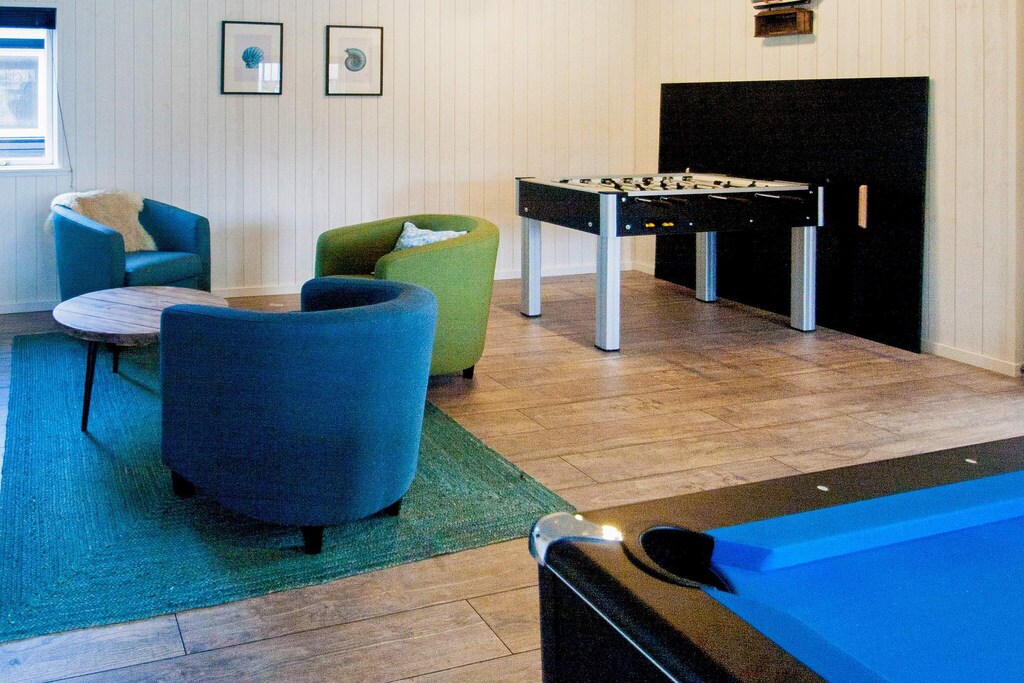 In the first row down to the sea by Marielyst's good sandy beach you will find this 14-person cottage with swimming pool, whirlpool and sauna as well as various activities for the whole family to enjoy. The center of the house, the kitchen / family room, is both spacious and well equipped with i.a. double oven, dishwasher and refrigerator. In addition to the ample space for the diligent chefs, there is also plenty of space at the long dining table in front of the wood-burning stove, where you can cover nicely for holiday food or festive events. In the activity room there is a combined billiard and table tennis table, table football, darts and PlayStation 4. There is also a sofa group and a bar, so there is plenty of opportunity to have fun while you watch the players. Although the location right next to the beach speaks for being outside, there is also plenty to indulge in inside. Take a swim in the indoor pool with water slide and counter-current system, immerse yourself in the bubbling whirlpool or sit for a while in the hot sauna for the full feeling of well-being and self-pampering. The sleeping accommodation is divided into seven double rooms and a loft with four extra beds. There is a partially covered terrace where the food can be prepared on the grill and there is plenty of space for everyone to enjoy themselves together. The cottage is located in a car-free area, which means that parking does not take place at the individual houses, but in a common parking space in the area. However, it is possible to unload the luggage or leave your electric car in a turning area by the house. For several years, the beach has been named one of Denmark's best bathing beaches. In addition to the short distance to salt water and sand between the toes, the local area in Marielyst is known for a cozy city life with many different cafes, ice cream parlors and shops. Due to the size of the house, the price of cleaning on this Holiday home differs from the normal list price. Settlement of consumption, cleaning and deposit is paid in cash on site to the caretaker .. Not for rent to youth groups.