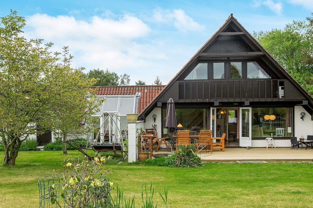 In an attractive area in Marielyst, this cottage with sauna is only approx. 300-400 meters from the center and shopping and approx. 500 meters to the best bathing beach. The cottage contains i.a. air / air heat pump and washing machine, free, wireless internet and TV. However, there are German and Danish channels not TV2. Large kitchen / living room / family room with plenty of space, bright kitchen with i.a. ceramic hobs and dishwasher as well as bio fireplace. Bathroom with toilet, sink, shower and underfloor heating. In the conservatory / hallway there is an arrangement with furniture to enjoy and access to the sauna. On the 1st floor there are two large rooms with a double beds and in one there is a real cot with duvet and pillow and exit to the swallow-terrace. The bathroom is on the ground floor. Large wooden terrace with plenty of space for barbecue, cosiness and sunbathing. Large plot with space for ball games and play. Not for rent to craftsmen and youth groups.