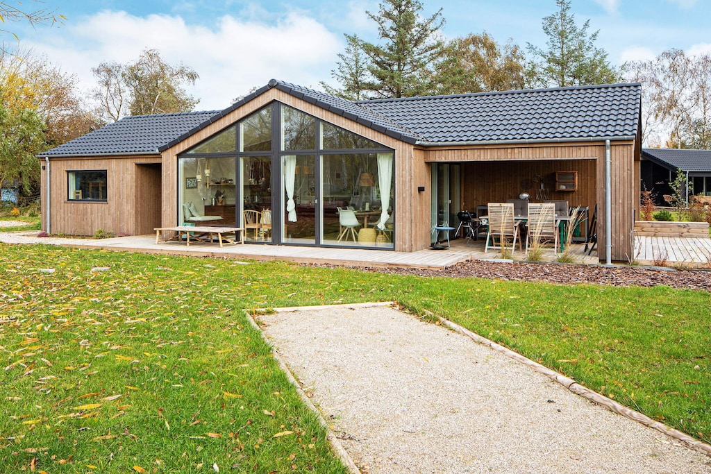 In the heart of Marielyst, just a short walk from the family-friendly beach, shops, bakery, restaurants, and even a golf course, you’ll find this modern holiday home that combines comfort with convenience. Designed with light and space in mind, the open-plan living room connects seamlessly with the reddish-toned kitchen, creating a welcoming hub for family gatherings. From both the kitchen and the dining area, large windows frame views of the garden, while a wood-burning stove and eco-friendly air-to-air heat pump ensure a cozy atmosphere year-round. The home offers three bedrooms, making it ideal for families or small groups. Two rooms are furnished with double beds, while the third features a bunk bed with a pull-out lower berth that can accommodate an extra guest. The bathroom is modern and practical, with a shower, toilet, and underfloor heating for extra comfort. A fully equipped kitchen with ceramic hob, fridge-freezer, and dishwasher makes meal preparation easy, while amenities like a washing machine, Chromecast, and international TV channels add to the convenience. Free Wi-Fi keeps everyone connected, though many guests may prefer to disconnect and simply enjoy the calm surroundings. Outdoors, the property opens onto a generous 1,600 m² natural plot, offering both space and privacy. A 46 m² terrace, partly covered, invites you to enjoy long summer meals and quiet mornings with coffee in the fresh air. The grounds also feature a fire pit, a pétanque court for friendly competitions, a summer outdoor shower, and a barbecue for evenings under the open sky. Here, days unfold at an easy pace—whether it’s beach walks, cooking together, or simply sitting by the fire. Please note: the house is not available for youth group rentals.A refundable deposit might be charged closer to your check-in date. The security deposit ensures a smooth stay and covers any additional services or consumption charges.This deposit covers utilities consumed during your stay and any additional services that may be taken.The final amount will be adjusted based on actual meter readings, actual usage of extra services, and any remaining balance will be refunded within 21 days after checkout.This deposit simply acts as a prepayment for charges that you would anyways pay for, ensuring a seamless stay and check-out experience.