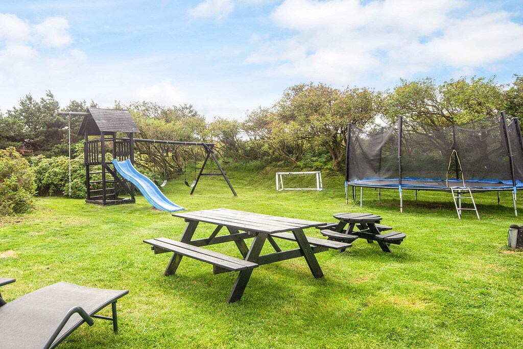 Situated in the popular seaside resort of Vejers, this holiday cottage is located on a 2250 m² large natural plot. The house is tastefully furnished, so you can feel at home the moment you step inside. The 41 m² swimming pool room is provided with a 21 m² large swimming pool and a relaxing whirlpool for 5 persons. After a long day full of activities you can get warm in the sauna. The open-plan, fully fitted kitchen is connected to the living room which is furnished with a flat screen TV, a satellite dish, a video, a stereo sound system with a CD-player and a wood burning stove. In one of the bedrooms, there is also a PlayStation with games. On the plot you will find swing and sandpit and there is also outdoor table tennis and a trampoline (usage at own risk/insurance). The house is located near a beach with inshore fishing and Put and Take fishing lakes, so remember to bring your fishing gear. No letting to youth groups.A refundable deposit might be charged closer to your check-in date. The security deposit ensures a smooth stay and covers any additional services or consumption charges.This deposit covers utilities consumed during your stay and any additional services that may be taken.The final amount will be adjusted based on actual meter readings, actual usage of extra services, and any remaining balance will be refunded within 21 days after checkout.This deposit simply acts as a prepayment for charges that you would anyways pay for, ensuring a seamless stay and check-out experience.