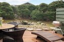 Dusche, kleine gemütliche Terrasse