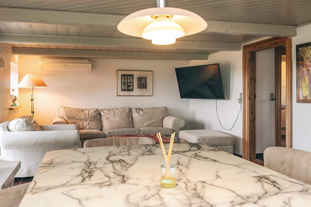 Older fisherman's house with a fantastic panoramic view of the Limfjord. The house is equipped with, among other things, wifi and Smart TV in the living room for streaming your own services. There is a wood-burning stove, which provides coziness on cold evenings. Heat pump in the living room. Please note that the ceiling height on the ground floor is only 1.80 meters, and some doorways are down to 1.60 meters. There is room for a total of 5 people: There is a bedroom with a double bed on the ground floor, from which there is also access to the first floor. On the first floor there is a room with a double bed and a 90 cm wide single bed in the passage room/living room. Living room on the 1st floor with fantastic views. Garden furniture on the terrace with a beautiful view of the water. Not rented to youth groups.A refundable deposit might be charged closer to your check-in date. The security deposit ensures a smooth stay and covers any additional services or consumption charges.This deposit covers utilities consumed during your stay and any additional services that may be taken.The final amount will be adjusted based on actual meter readings, actual usage of extra services, and any remaining balance will be refunded within 21 days after checkout.This deposit simply acts as a prepayment for charges that you would anyways pay for, ensuring a seamless stay and check-out experience.