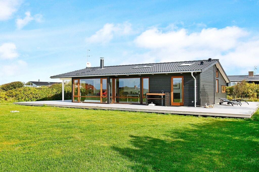 A holiday home located in the cottage area of Kærgården. The house is elevated with peaceful surroundings and a view of the sea from the yard and terrace. There is a whirlpool and underfloor heating in the bathroom. There is a bright living room with a wood-burning stove. Open and well-equipped kitchen. There is an extra TV with DVD in one of the bedrooms. By the terrace there is an outdoor kitchen. The area is very child-friendly and children can play safely at a playground with mini-golf. The sea is 200 metres away.A refundable deposit might be charged closer to your check-in date. The security deposit ensures a smooth stay and covers any additional services or consumption charges.This deposit covers utilities consumed during your stay and any additional services that may be taken.The final amount will be adjusted based on actual meter readings, actual usage of extra services, and any remaining balance will be refunded within 21 days after checkout.This deposit simply acts as a prepayment for charges that you would anyways pay for, ensuring a seamless stay and check-out experience.