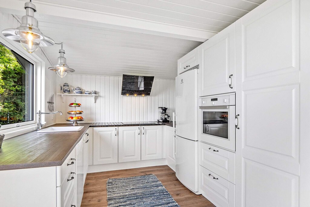 Well-located and well-maintained vacation home with panoramic views of the water and an outdoor hot tub for 4 people, located in the first row facing the water at Ejsingholm in peaceful surroundings on a large beach plot only about 50 meters from the water. You can enjoy the view of the water from the outdoor hot tub, among other things. Note: New - Environmentally friendly outdoor shower heated by solar cells. The vacation home is bright and inviting and is practically furnished with a combined kitchen/family room and direct access to the living room. There is a panoramic view of the water both outside and inside. The living room has cozy furniture, a radio, free internet, PlayStation 4 including games, TV with both German and Danish channels, and Chromecast, where you can stream your own TV services. In addition, there is a panoramic view of the water from the large windows and direct access to the terrace. The kitchen features a ceramic hob, separate oven with grill, extractor hood, microwave, dishwasher, and coffee machine. There is a wood-burning stove for cool summer evenings or rainy autumn evenings. The kitchen also offers panoramic views of the water and direct access to the terrace. Bathroom with shower, toilet, and underfloor heating. There is a washing machine in the house. The house is also energy efficient with a heat pump, allowing for lower consumption. The cottage has two bedrooms, one with two single beds and one with four bunk beds. There are several open terraces, all with good garden furniture. On the house's main terrace with panoramic views of the water, there are also two sun loungers. From here, you can enjoy dinner prepared on the house's gas grill while the sun sets over the water.In addition, there is charging for electric cars (7.4 kW).Not available for rental to youth groups.A refundable deposit might be charged closer to your check-in date. The security deposit ensures a smooth stay and covers any additional services or consumption charges.This deposit covers utilities consumed during your stay and any additional services that may be taken.The final amount will be adjusted based on actual meter readings, actual usage of extra services, and any remaining balance will be refunded within 21 days after checkout.This deposit simply acts as a prepayment for charges that you would anyways pay for, ensuring a seamless stay and check-out experience.