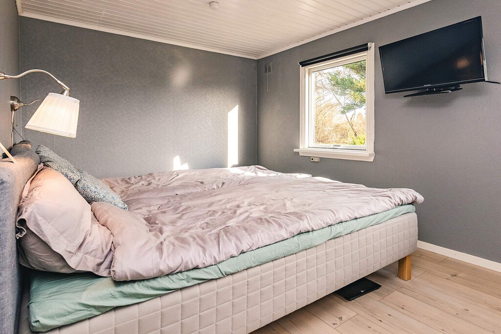 This lovely modernized cottage offers a cozy and comfortable atmosphere, perfect for a relaxing getaway. It features a well-equipped living room with a double bed, wood-burning stove, Chromecast, and TV, making it ideal for both relaxation and entertainment. The cottage also has one bedroom with a double bed, ensuring a restful stay. With electric heating, the home stays warm and inviting throughout the year. Situated on a spacious 1200 m² natural plot, it offers plenty of outdoor space to enjoy nature and tranquility. The cottage's location in South-West Zealand allows for easy access to a range of local attractions and activities. The beautiful beach, just a short distance away, boasts several bathing jetties, perfect for a refreshing swim or sunbathing. For family fun, visit the BonBon-Land amusement park or explore the famous Møns Klint, a stunning natural landmark. If you're in the mood for adventure, take a trip to Tårnet for panoramic views of the area. With scenic hiking trails and cycling routes nearby, there are plenty of opportunities to immerse yourself in the region's breathtaking landscapes. The well-appointed kitchen is equipped with an electric stove, refrigerator with freezer, microwave, coffee maker, and dishwasher, making it easy to prepare meals during your stay. The bathroom includes a washing machine, WC, sink, and shower for added convenience. Outside, you'll find a lovely terrace, garden furniture, and a charcoal grill, perfect for enjoying meals and relaxing in the fresh air. This cottage is ideal for creating lasting memories in a serene and beautiful location.