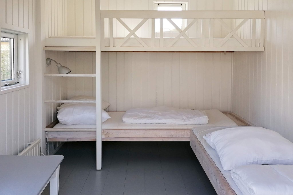 Functional holiday home located in an exciting nature area by Næs. The cottage consists of open kitchen and living room with access to east-facing terrace. There is a double bedroom and a large functional loft with accommodation for 2 people. There is also an annex with bunk beds. The house is i.a. equipped with dishwasher and washing machine. Not for rent to youth groups.