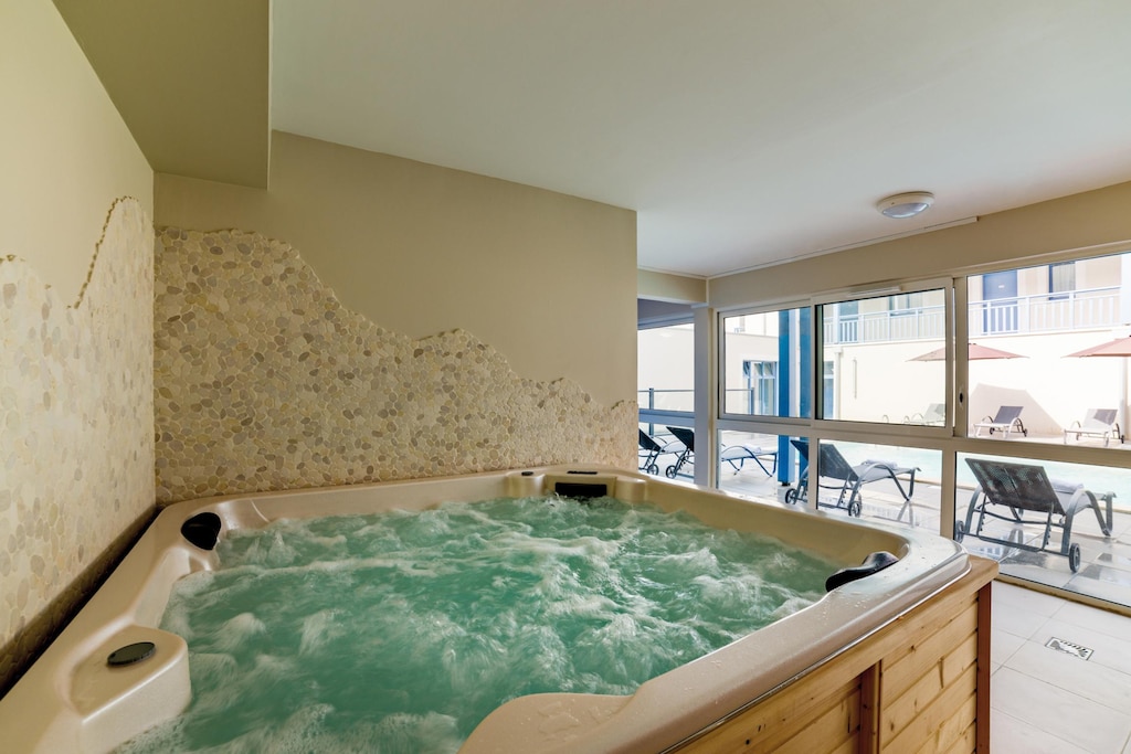 On site there is a reception, a courtyard with a heated outdoor swimming pool (open from mid-May to the end of September; depending on the weather), jacuzzi and sauna (for a fee), and washing and drying machines.