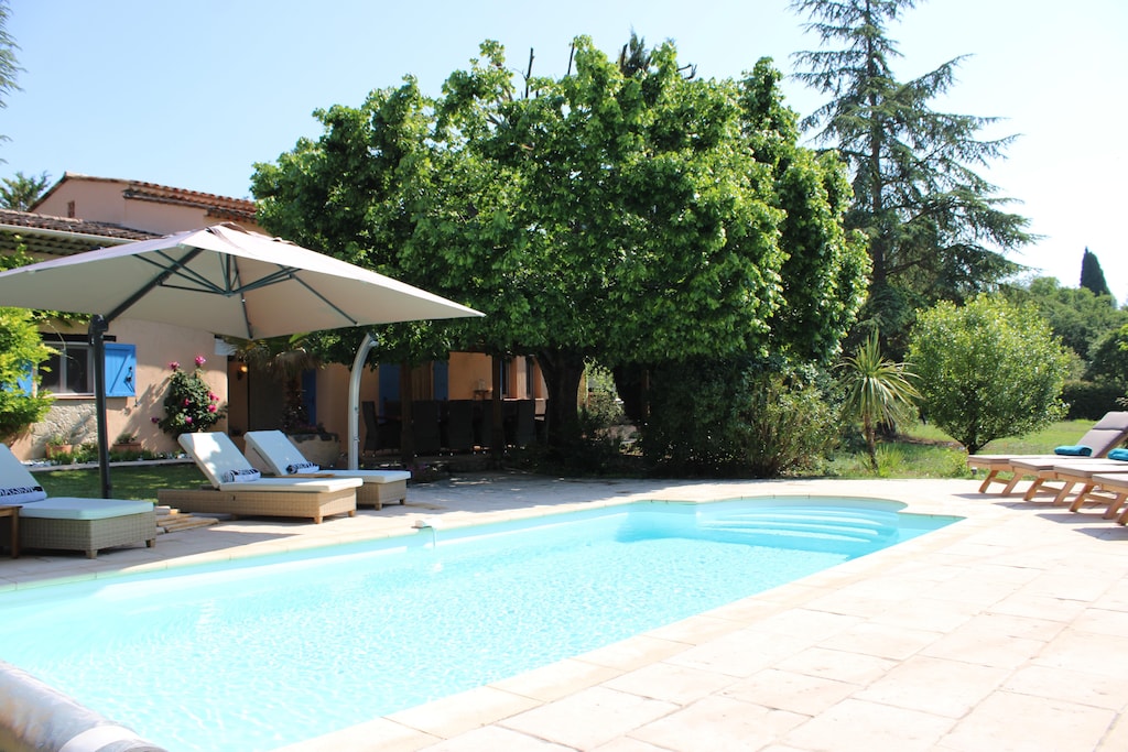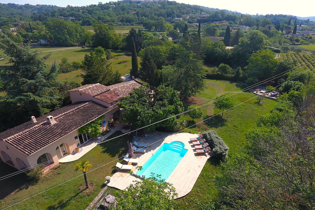 You will find Villa La Mayanne on a dead-end country road in Callian, between open fields. The villa was named after the water stream that borders the garden and behind the electric entrance gate is an imposing building with luxurious facilities such as a private swimming pool, a spacious garden and parking for 2 cars. Ideal for families or friends!