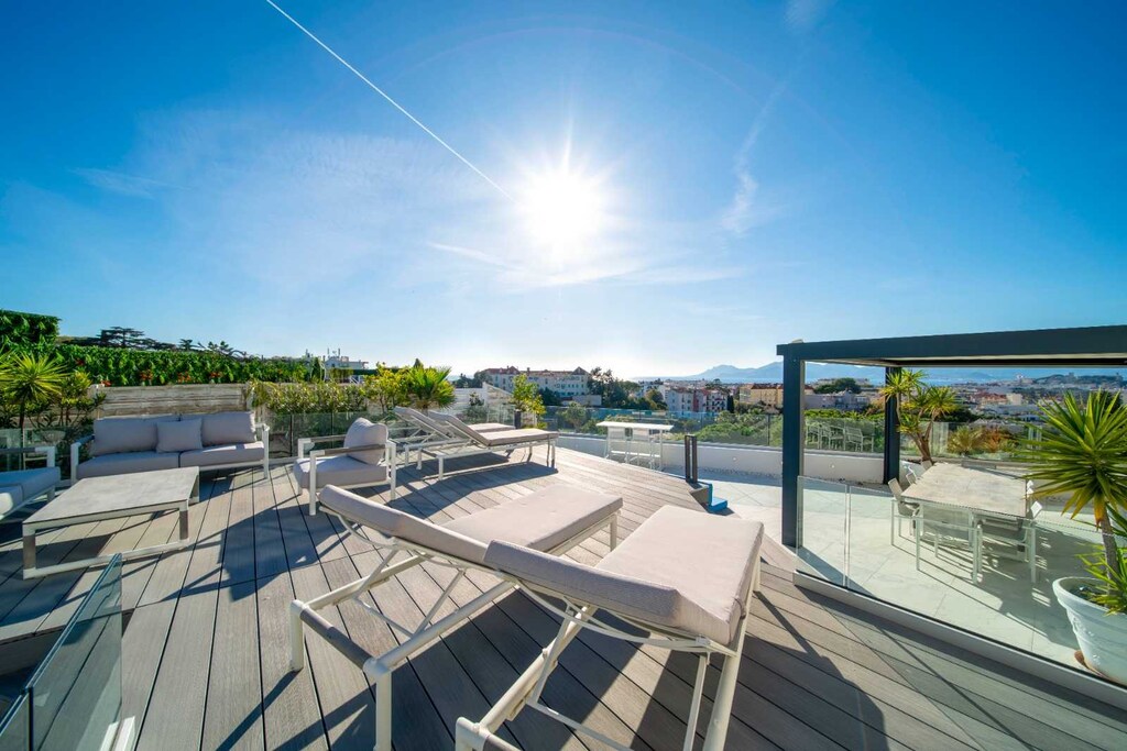 Luxury apartment of 180m2 of living space and 180m2 of terrace, located 15 minutes from the Palais des Festivals, 10 minutes from the beaches and 5 minutes from rue d'Antibes.