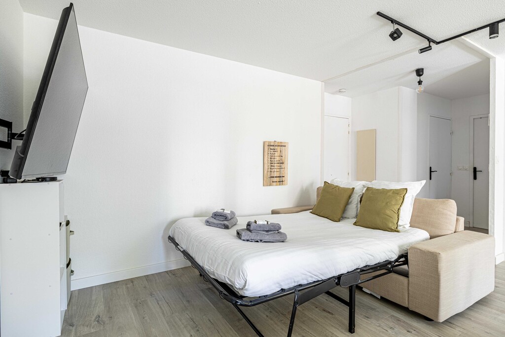 Welcome to Cannes, the pearl of the Côte d'Azur! Discover our urban retreat combining elegance and comfort. This two-bedroom flat with air conditioning offers modern facilities, a generous balcony and private parking. With its fully-equipped kitchen, cosy bedroom and welcoming living space, our property is a haven of peace for up to 4 people.