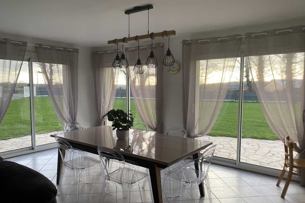 Ruim en licht vakantiehuis. De woonkamer met een comfortabele hoekbank en drie grote schuifpuien is heerlijk licht. De witte vloerplavuizen versterken het licht maar maken de woonkamer wel wat lawaai/geluid gevoelig. De slaapkamers boven zijn ware slaapzalen ! Alle apparatuur aanwezig en goed werkend. Ruime parkeerplaatsen op eigen terrein en (inbegrepen) WiFi ook handig. Het enige wat er aan ontbreekt is de mogelijkheid om bedlinnen te huren. Met kleine kinderen is de loopafstand naar Étretat net te ver,zeker omdat de terugweg een best wel steile klim omhoog bevat.