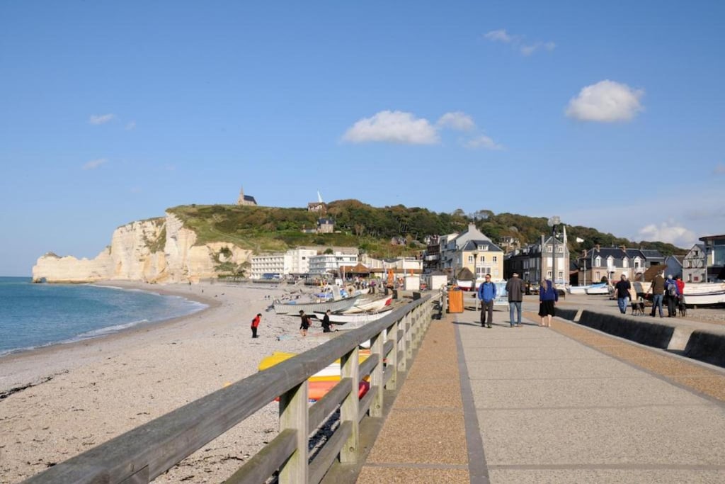 Am Rande von Êtretat gelegen mit Superaussicht auf das Meer und das Denkmal der Luftpioniere Nungesser und Coli sowie der Chapelle, bietet das Haus eine gute Ausgangsposition um die nähere Umgebung von ÊTRETAT sowie die Küstenorte von Deauville bis Dieppe zu erkunden. In 15 min ist man mitten im Trubel am Strand. Alle Restaurants sind zu empfehlen. Man sollte unbedingt die Moules Frites probieren. Für den Rückweg braucht man etwas länger, da das Haus nicht auf Meeresspiegelhöhe befindet. Wie auch bei der Aussicht. Besonders schön war das alte Fischerdorf Veules-les-Roses mit dem kleinsten Fluss und seinen Forellen. Interessant war auch der Ausflug nach Fécamp und dem ehemaligem Kloster, wo der bekannte BÉNÉDICTINE hergestellt wird. Die Führung in französischer und englischer Sprache war sehr informativ. Ein Tagesausflug nach OMAHA BEACH ist für einen Geschichtsinteressierten natürlich auch drin. Ein Besuch von Honfleur mit seinem schönen Stadtkern und kleinem Hafen lohnt sich auf jedem Fall. Für 1 1/2 Stunden Ausflug mit dem Schiff wird man mit einer schönen Sicht auf die PONT DE NORMANDIE, den Hafen von LE HAVRE sowie der Côte de Grâce belohnt. Im Ganzen ein hervorragender Ort um sich zu erholen und Land und Leute kennenzulernen.